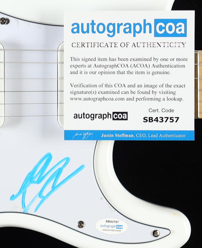Full-size electric guitar measures approximately 39" in length and has been hand-signed on the pick-guard by Post Malone.