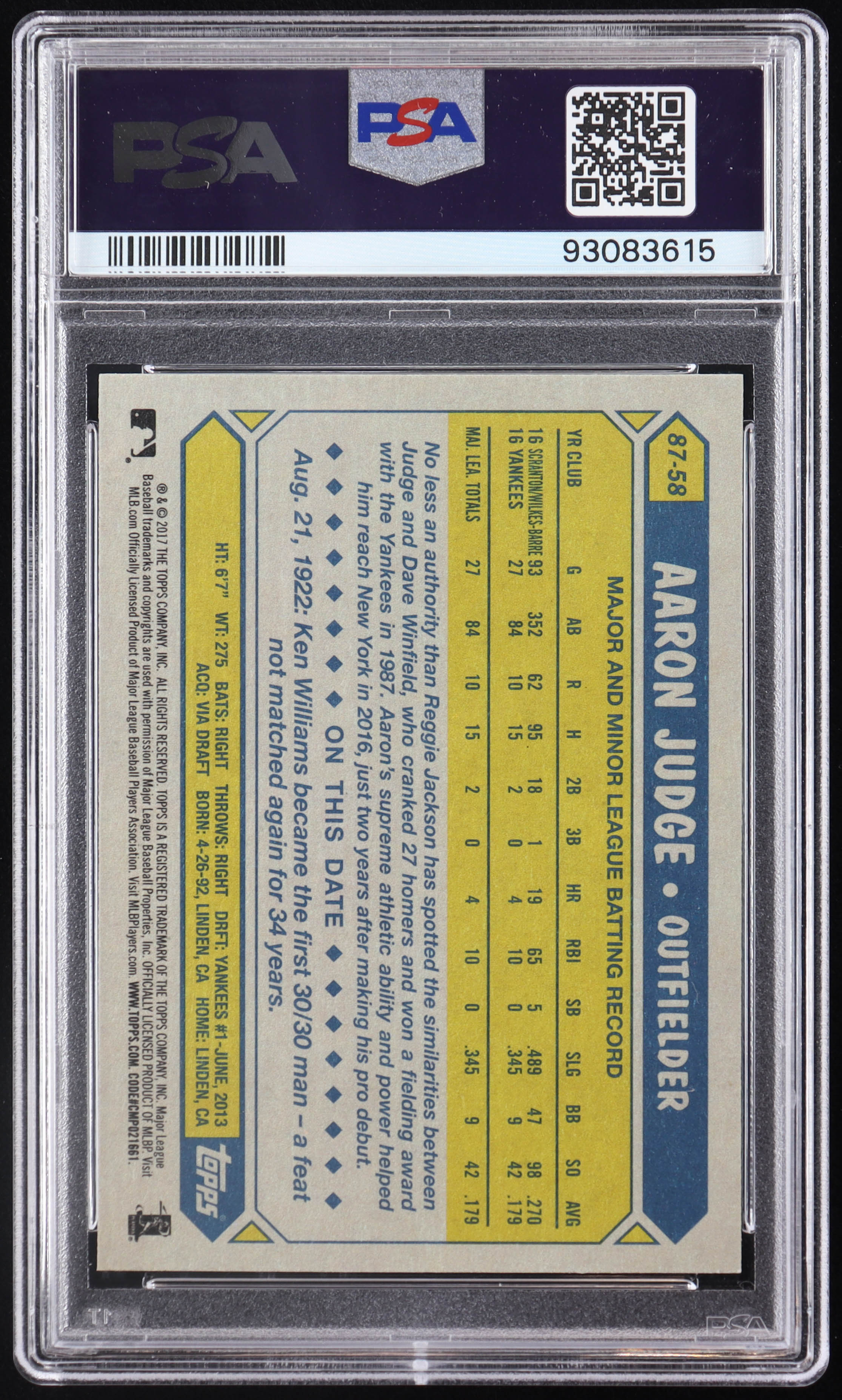 Aaron Judge 2017 Topps '87 Topps #8758 RC (PSA 8)