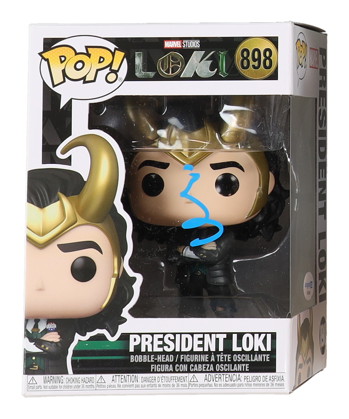 Funko Pop! Figure measures approximately 4" tall and the packaging has been hand-signed on the packaging by Matt Damon (Loki).