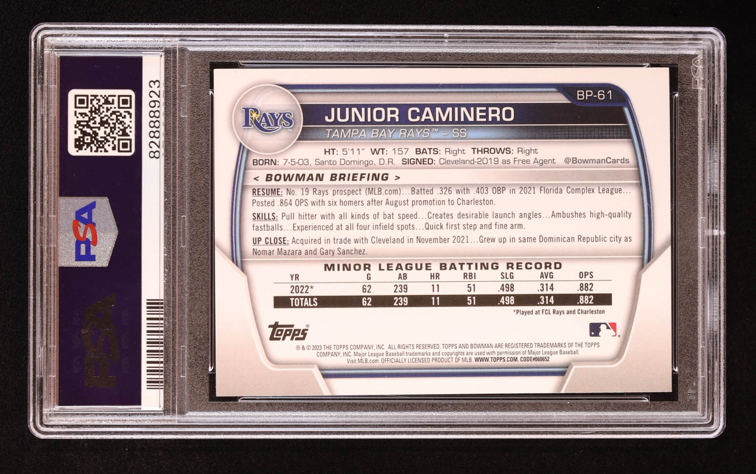 Junior Caminero Signed 2023 Bowman Prospects #BP61 RC (PSA)