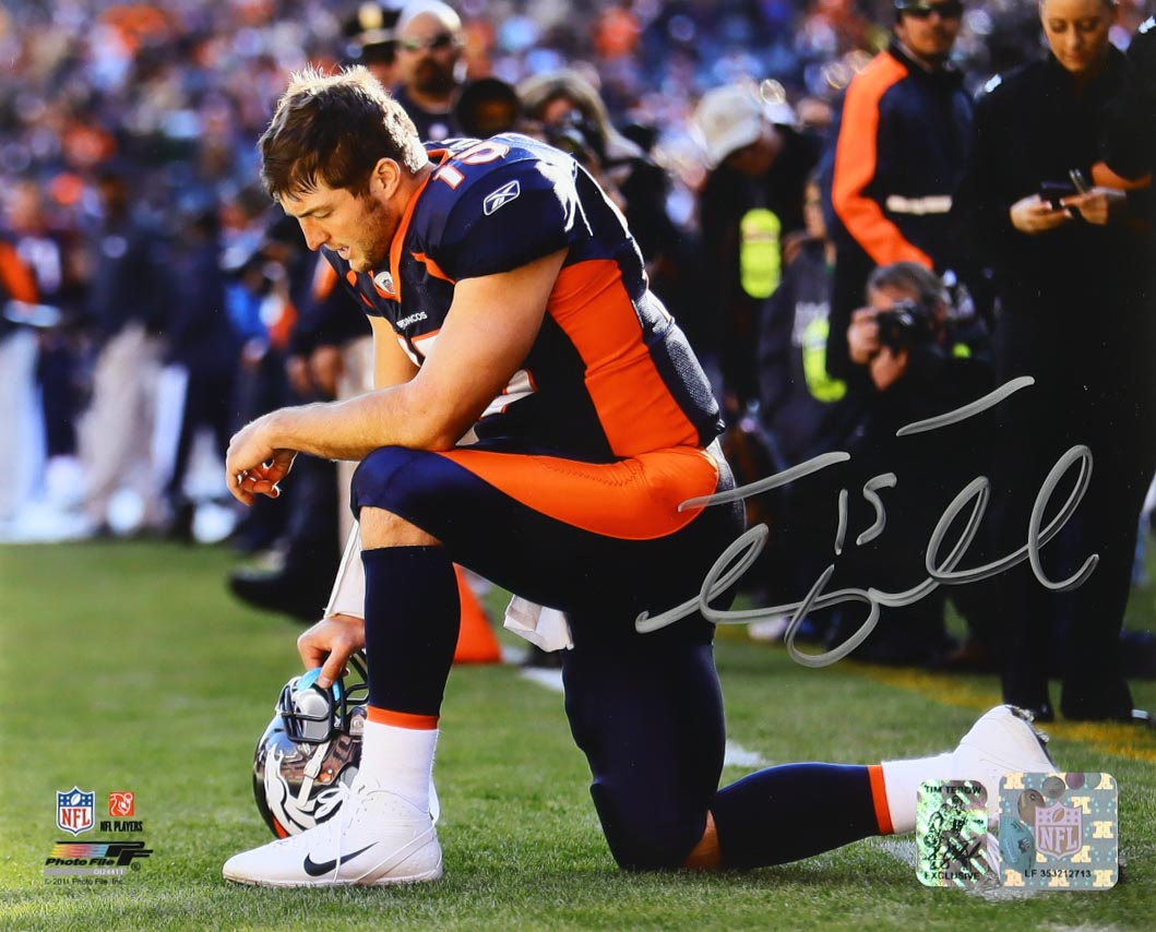 Photo measures 8" x 10" in size and has been hand-signed by Tim Tebow (Denver Broncos).