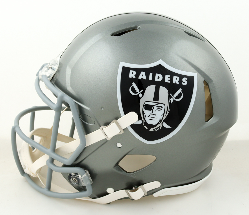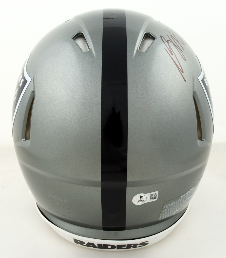 Riddell Las Vegas Raiders Full-Size Authentic On-Field Flash Alternate speed helmet. Hand-signed by Davante Adams.