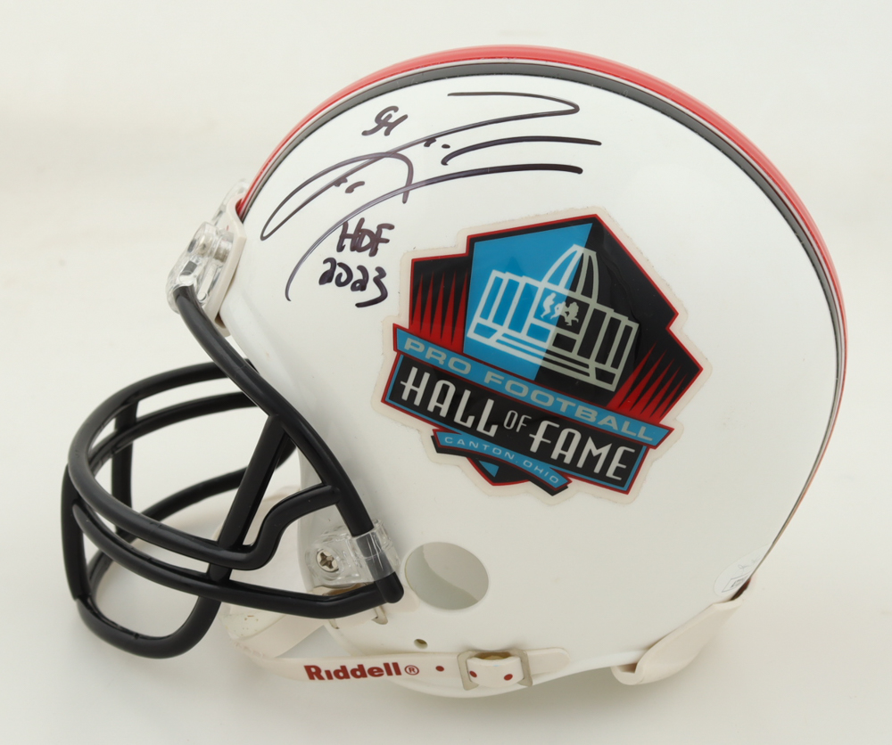Riddell Pro Football Hall of Fame mini helmet. Hand-signed by Zach Thomas (Miami Dolphins, HOF).