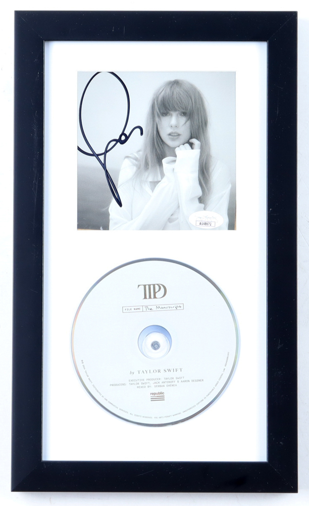 Custom frame measures approximately 7.5" x 13.5" in size. Features a "The Torture Poets Department" CD insert that has been hand-signed by Taylor Swift. The display also includes the CD and case as shown.