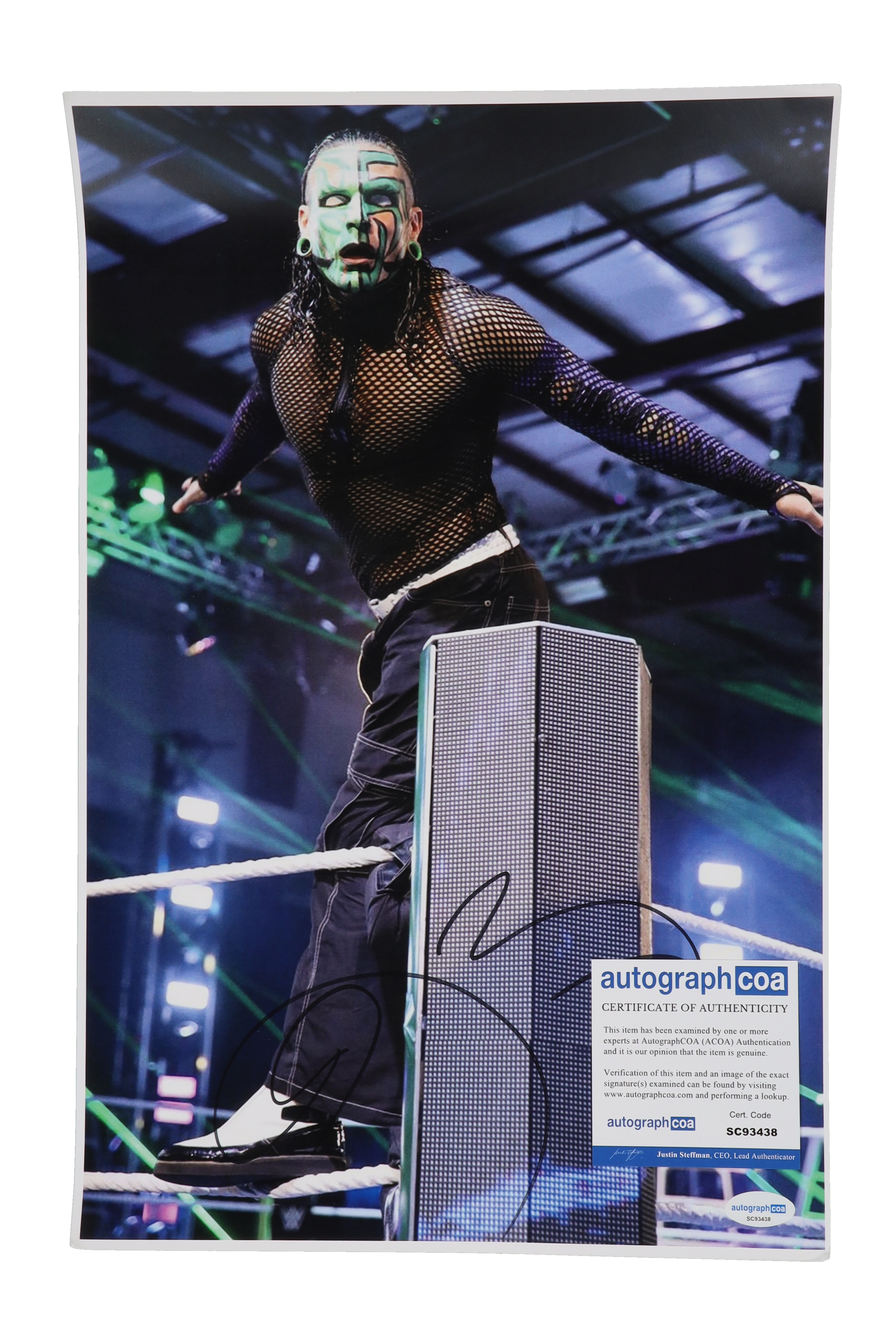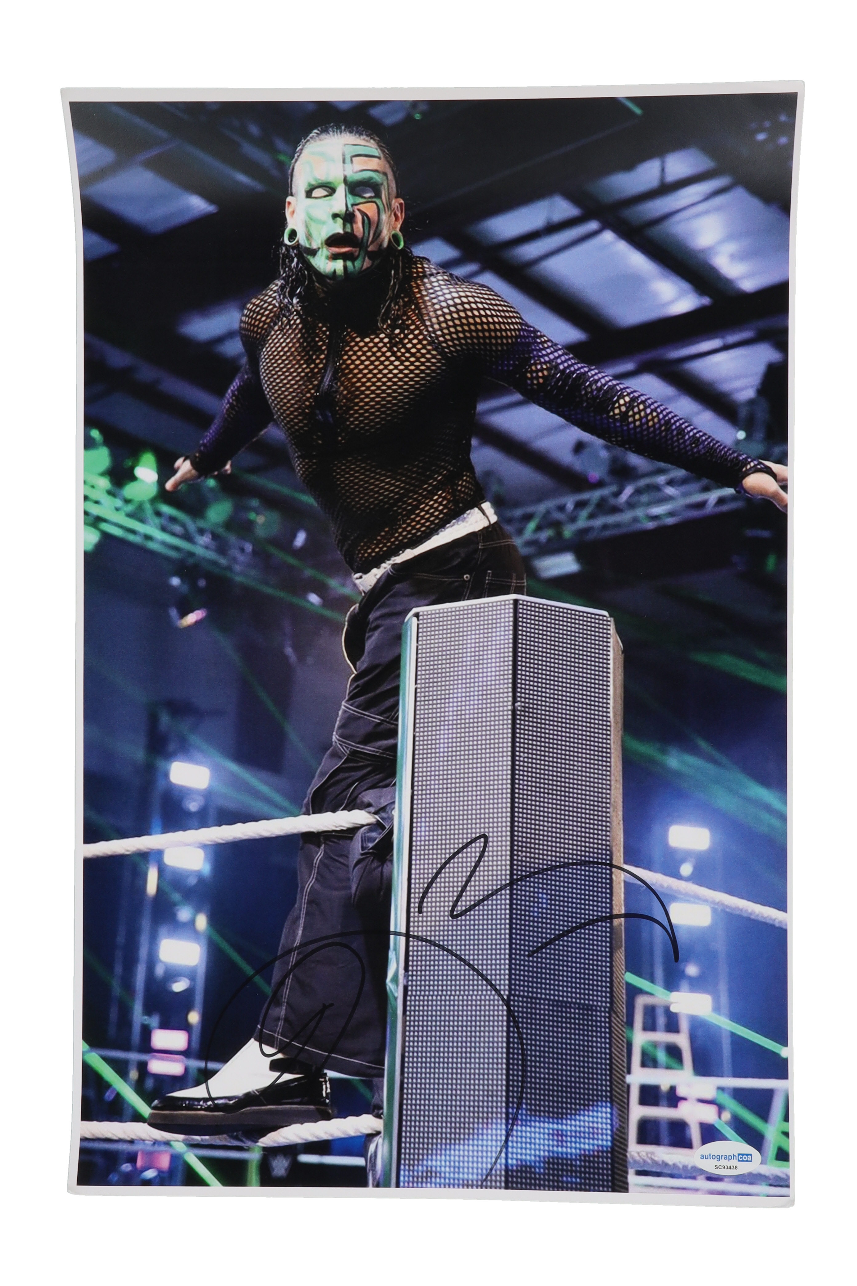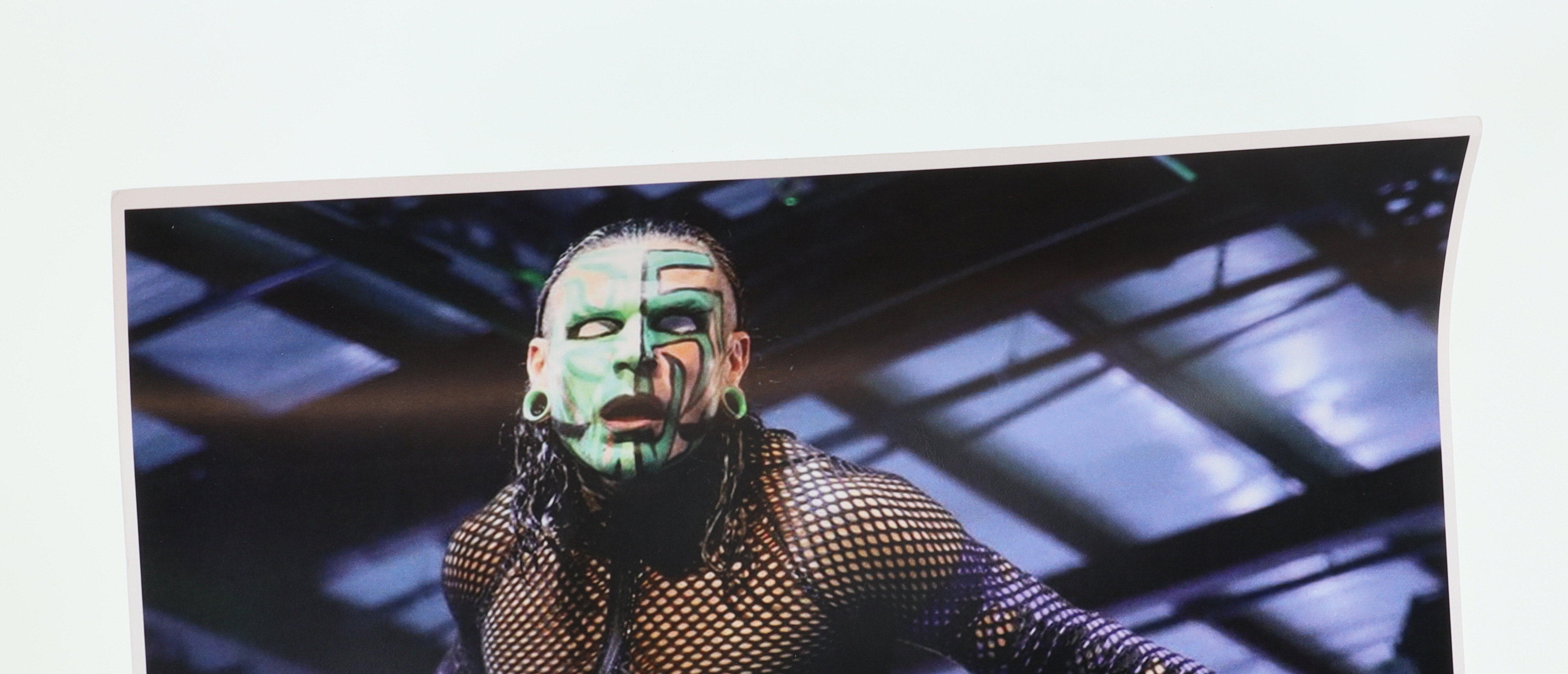 Photo measures 11" x 17" in size and has been hand-signed by Jeff Hardy. Please note, creasing on the corners.