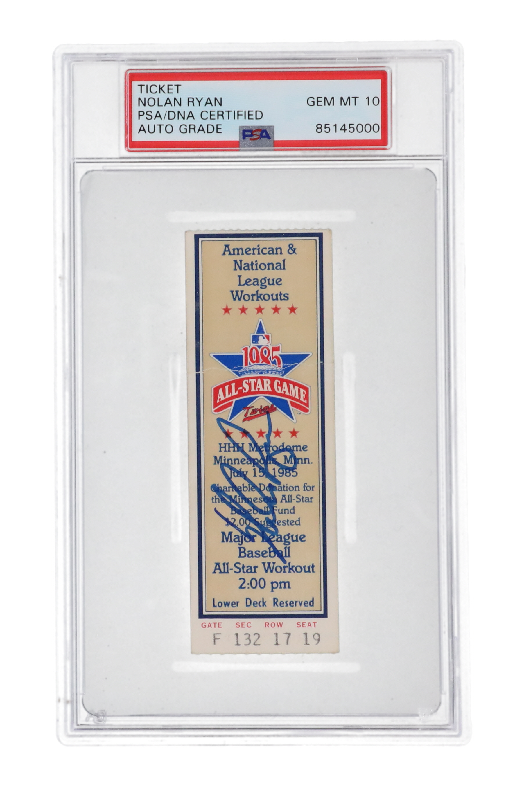 Nolan Ryan Signed 1985 All-Star Game Ticket (PSA | Auto Grade 10)