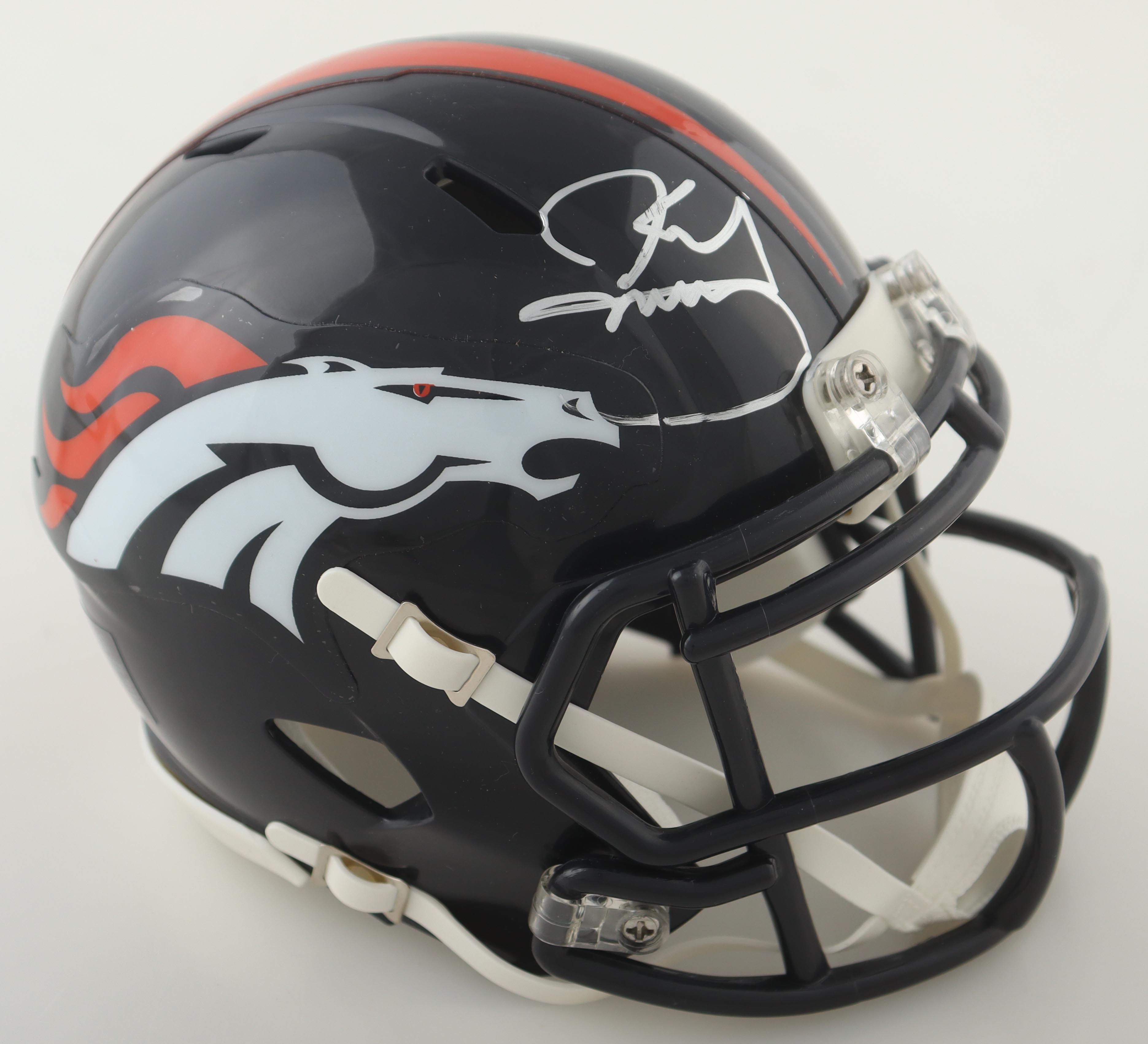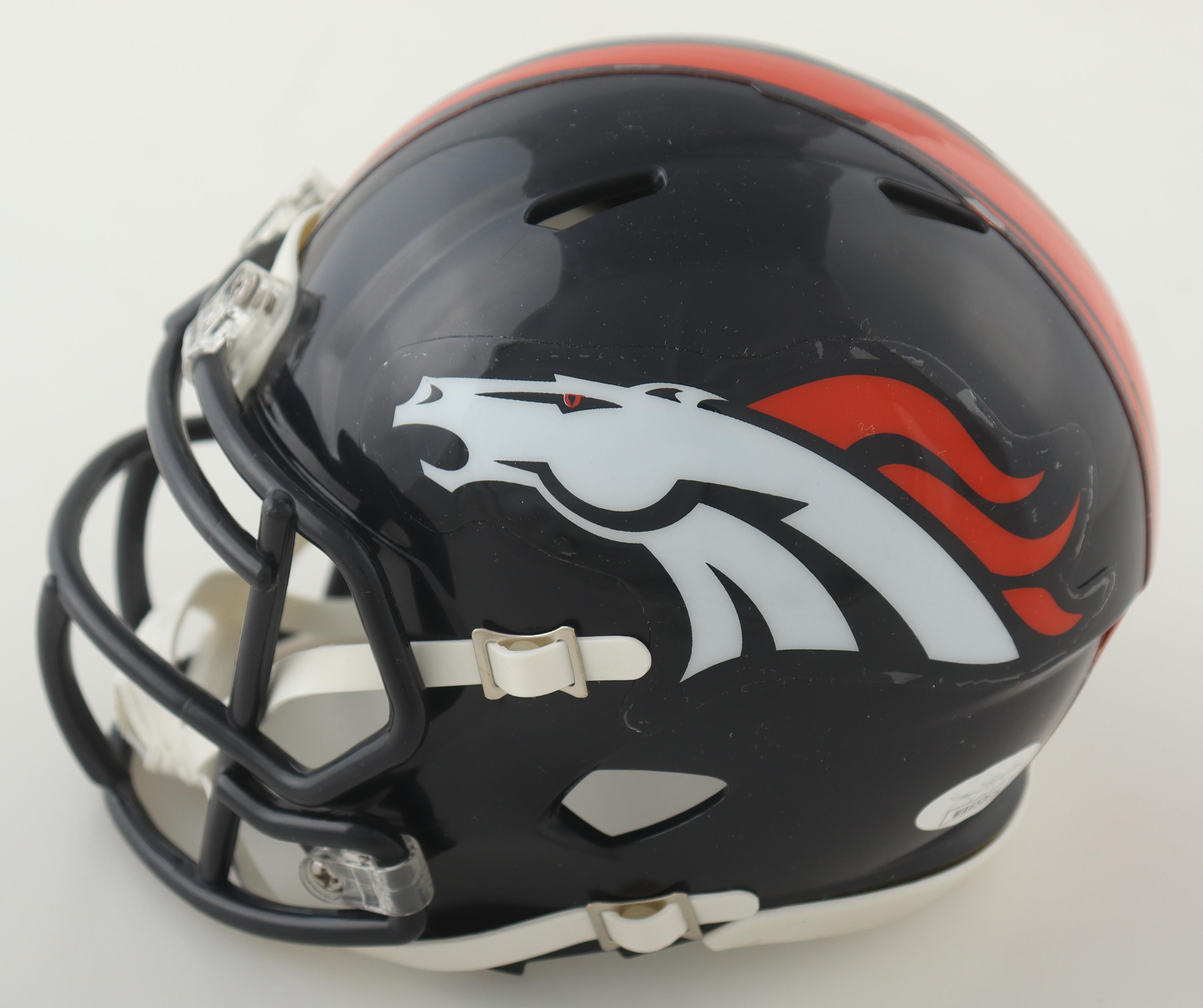 Riddell Denver Broncos speed mini helmet. Hand-signed by Karl Mecklenburg.