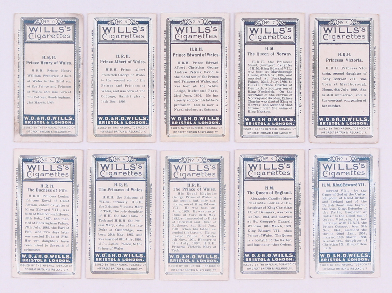 1908 Will's "Portraits of European Royalty" Complete Set of (50) Cigarette Cards