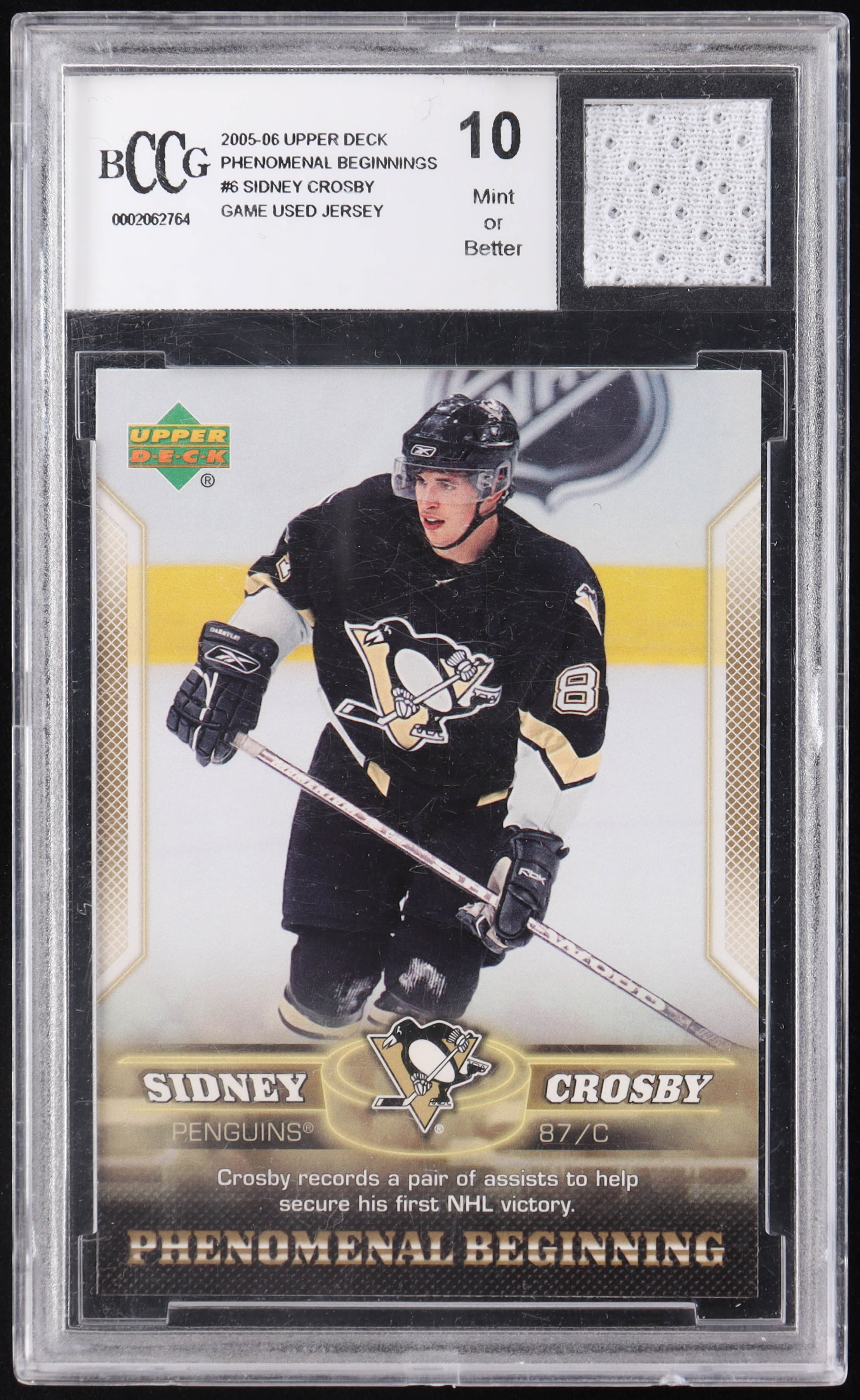 Sidney Crosby 2005-06 Upper Deck Phenomenal Beginnings #6 RC with Game-Used Jersey Piece (BCCG 10)