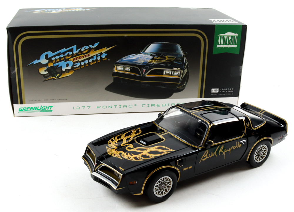 1977 Pontiac Firebird Trans Am Limited Edition Edition 1:18 Scale Die-Cast from "Smokey & The Bandit II" has been hand-signed by Burt Reynolds (D. 2018, Bo "The Bandit" Darville).