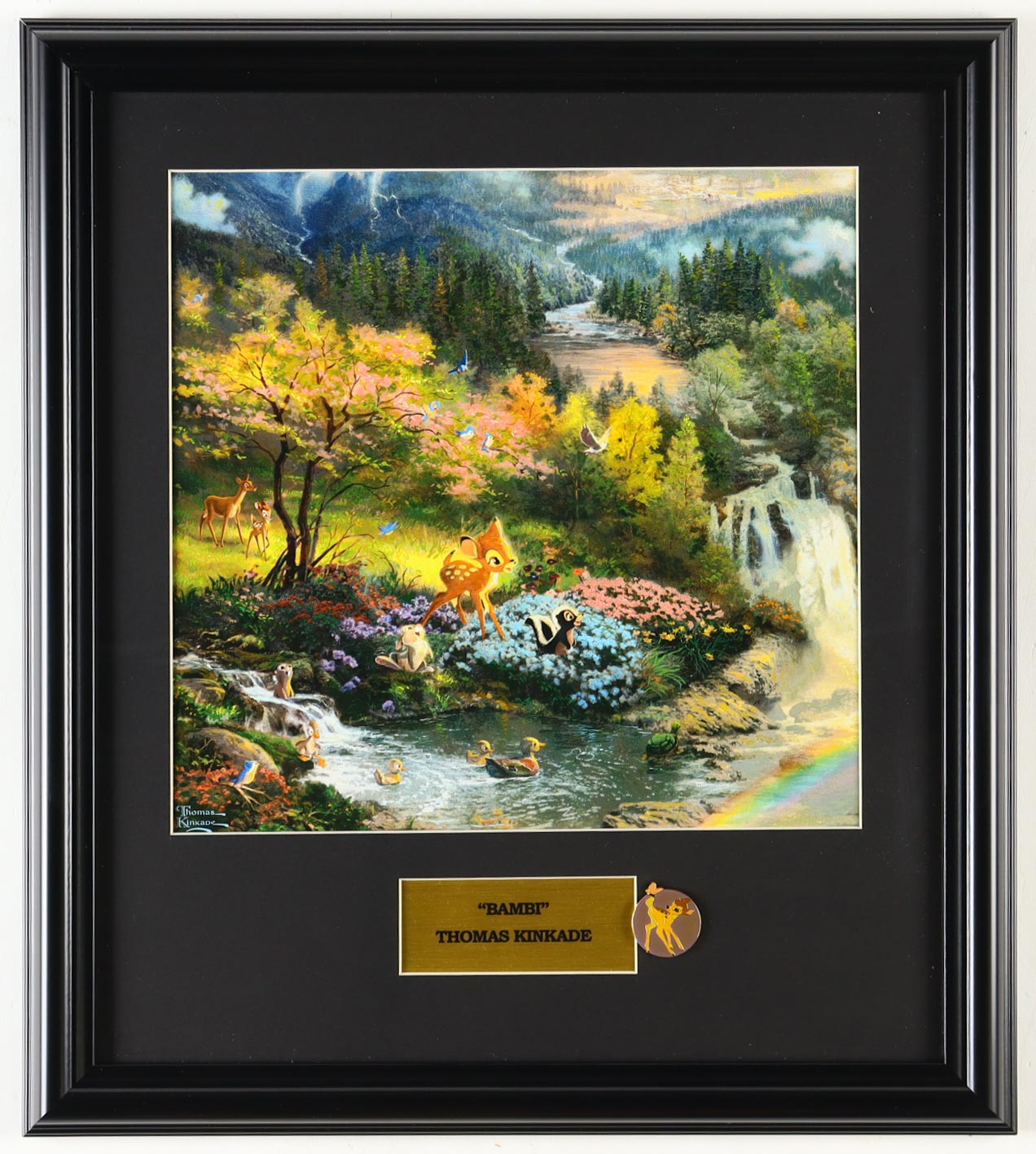Thomas Kinkade "Bambi" Custom Framed Print Display with Movie Character Pin