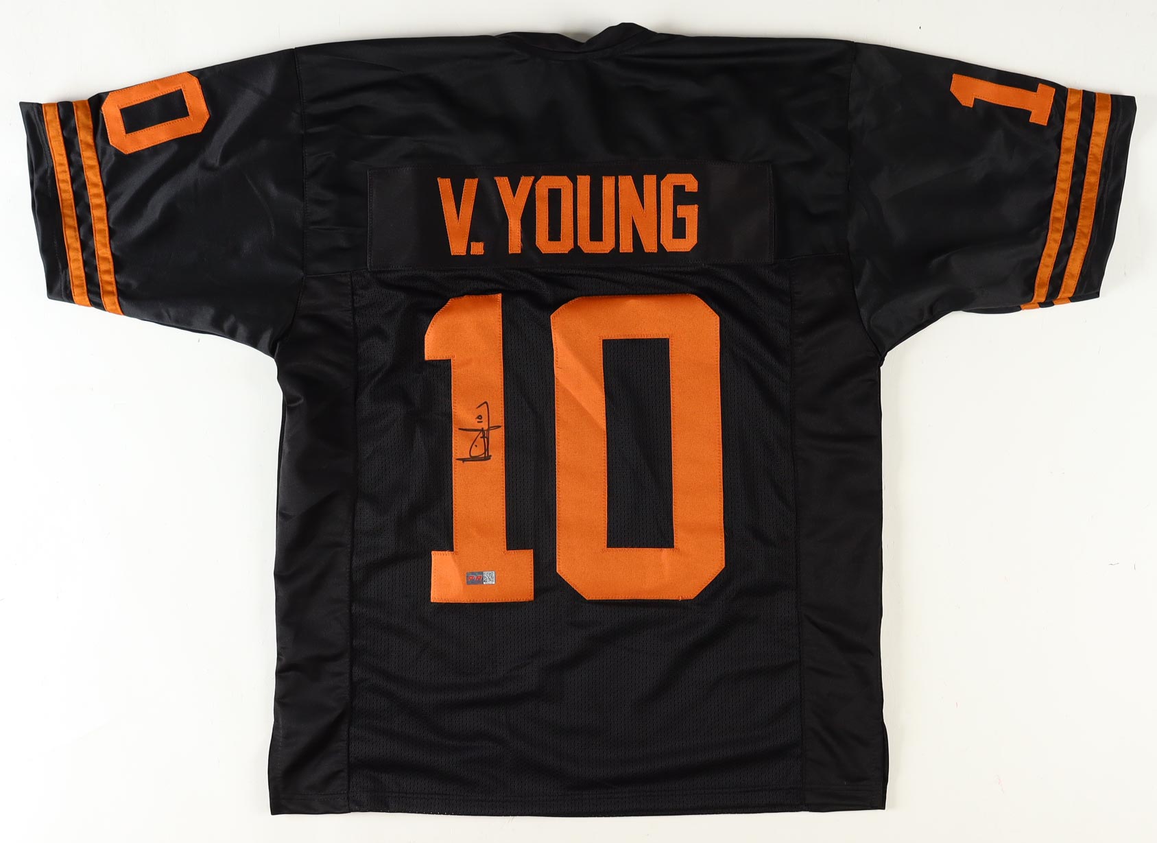 Custom jersey. Everything is sewn on, size XL. Hand-signed by Vince Young.