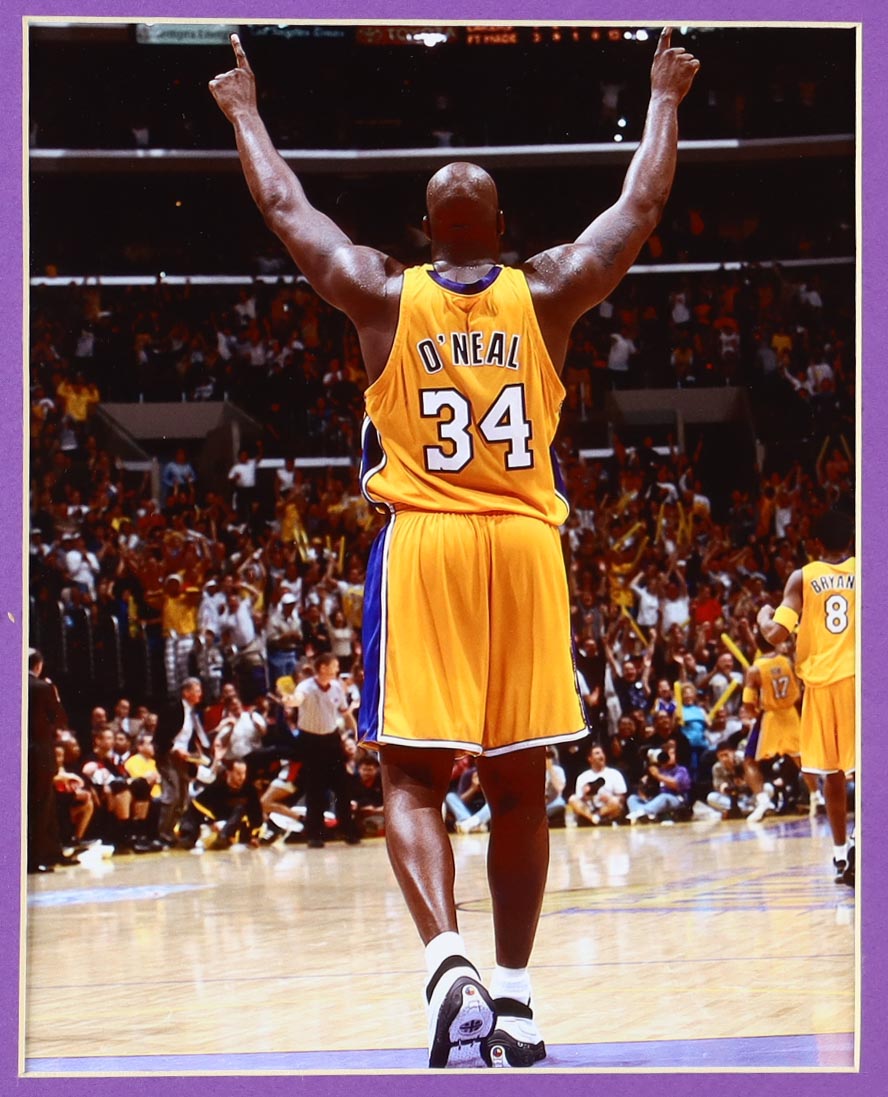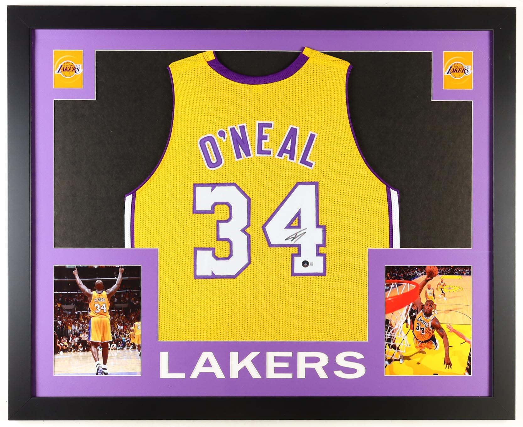 Custom frame measures approximately 35.5" x 43.5" in size. Features a jersey that has been hand-signed by Shaquille O'Neal (HOF).