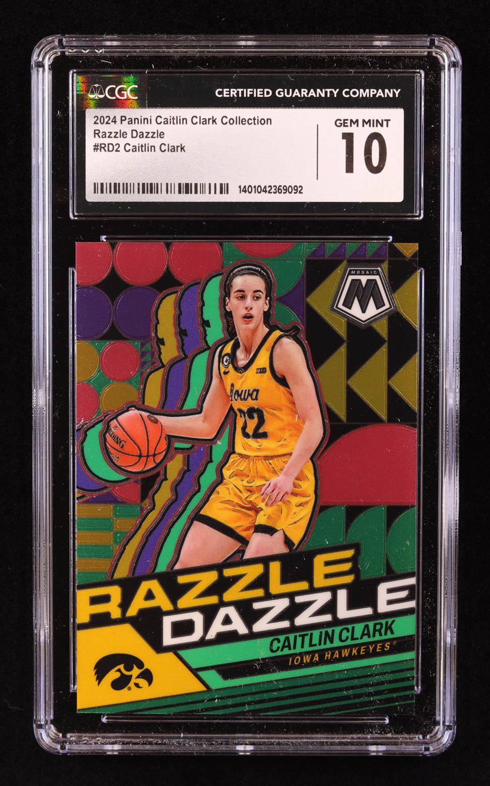 Caitlin Clark 2024 Panini Caitlin Clark Collection Mosaic Razzle Dazzle #RD2 RC (CGC 10)