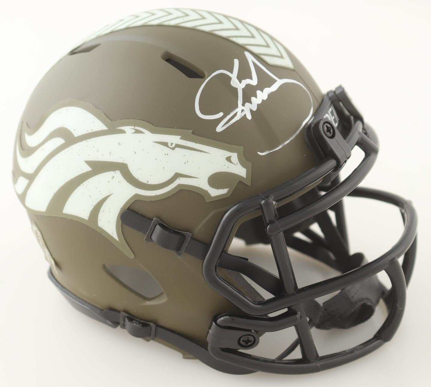 Riddell Denver Broncos Salute To Service Alternate speed mini helmet. Hand-signed by Karl Mecklenburg.