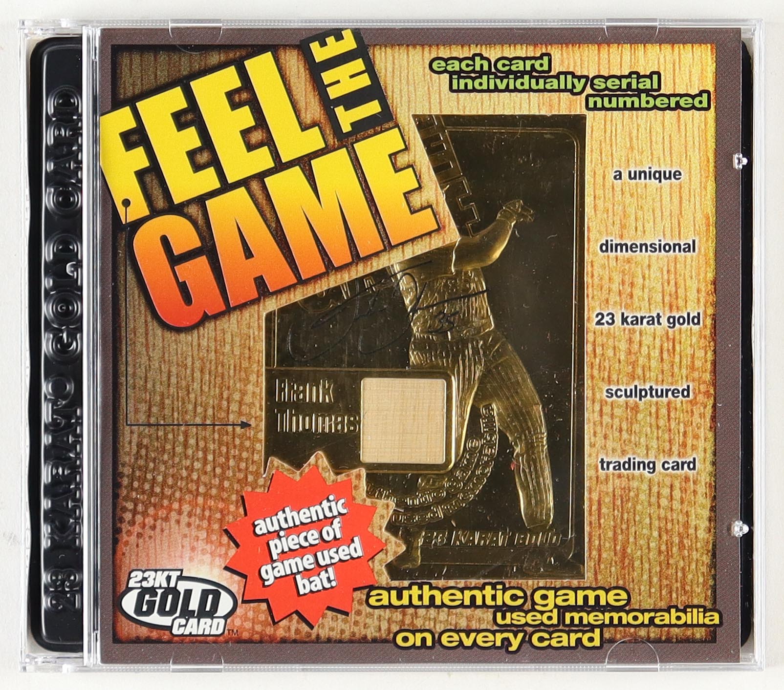 Frank Thomas 2000 Gold Collectibles Feel the Game Holographic Signature Game-Used Bat 23Kt Gold Card With Case