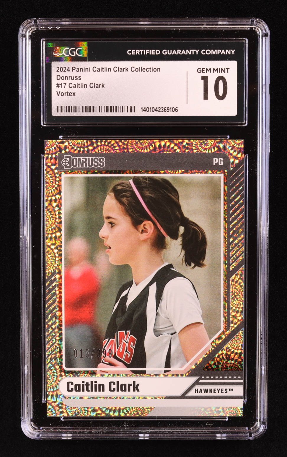Caitlin Clark 2024 Panini Caitlin Clark Collection Donruss Vortex #17 RC #13/399 (CGC 10)