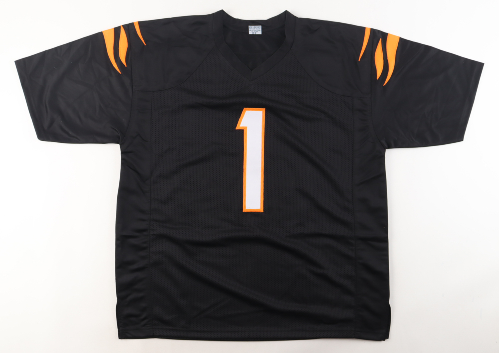 Custom jersey with everything sewn on, size XL. Hand-signed by Ja'Marr Chase.