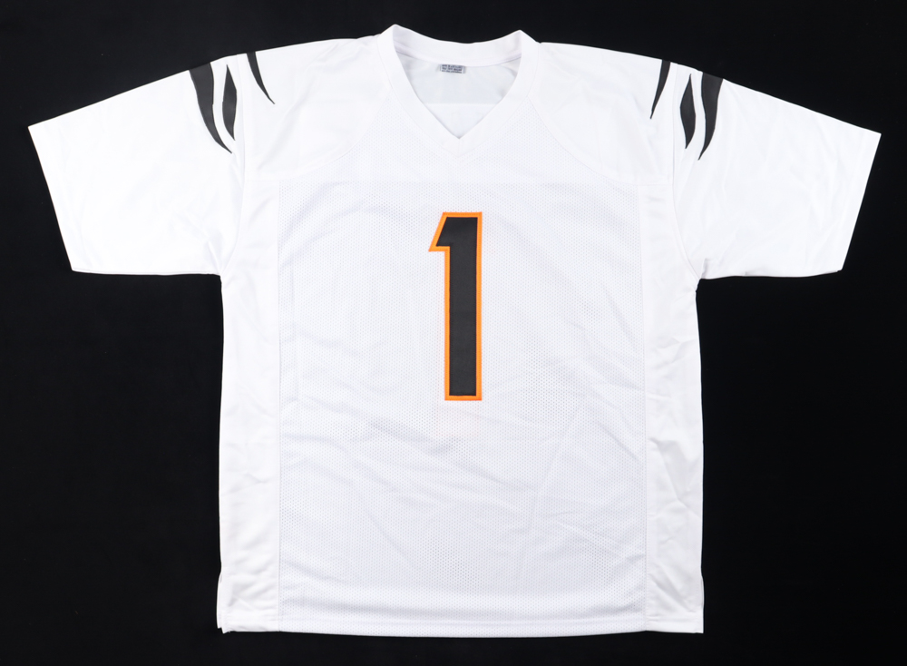 Custom jersey with everything sewn on, size XL. Hand-signed by Ja'Marr Chase.