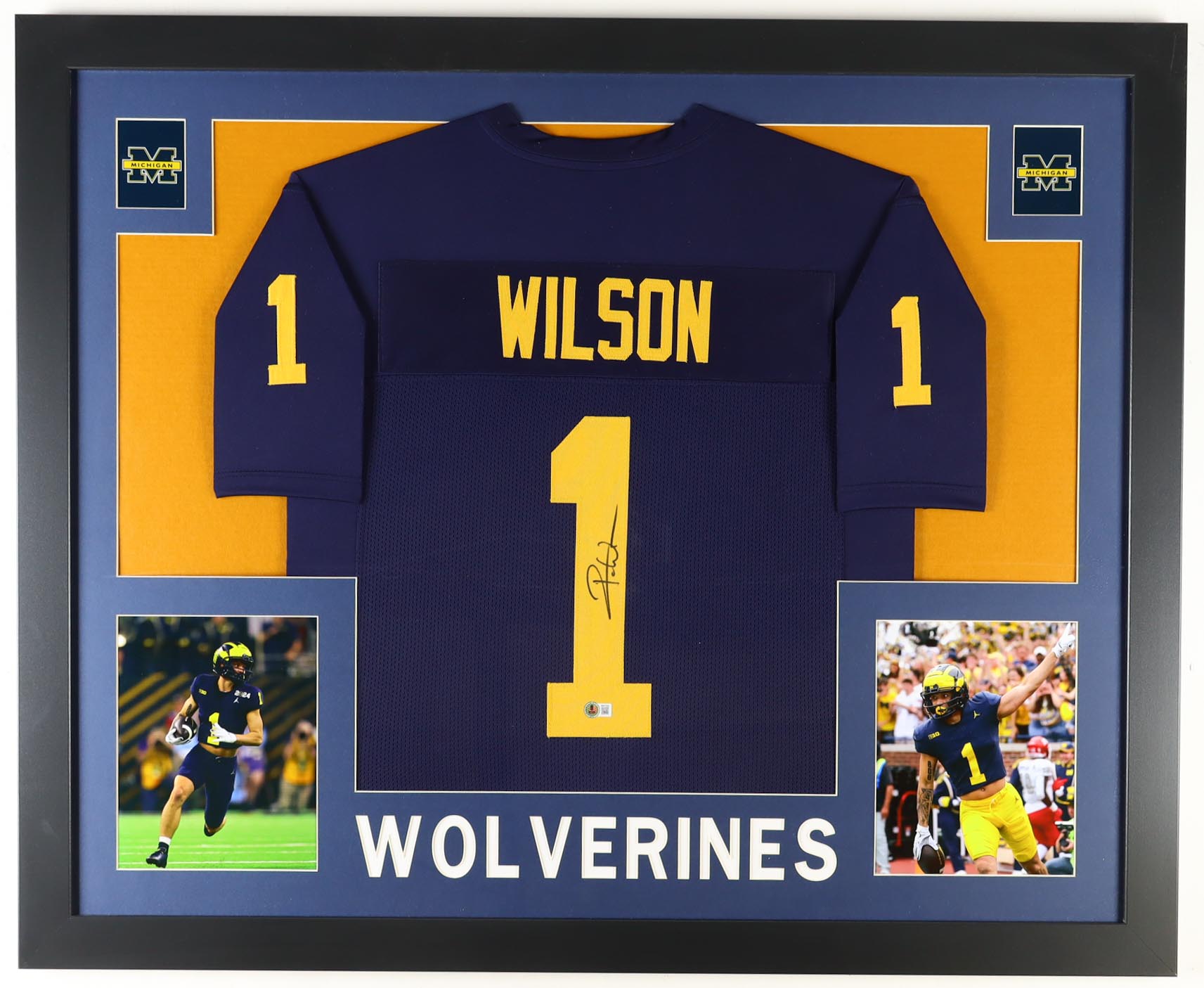 Custom frame measures approximately 34" x 42" in size and features a jersey hand-signed by Roman Wilson. The display also includes (2) 8" x 10" photos. Please note that the 8" x 10" photos may be in different order.