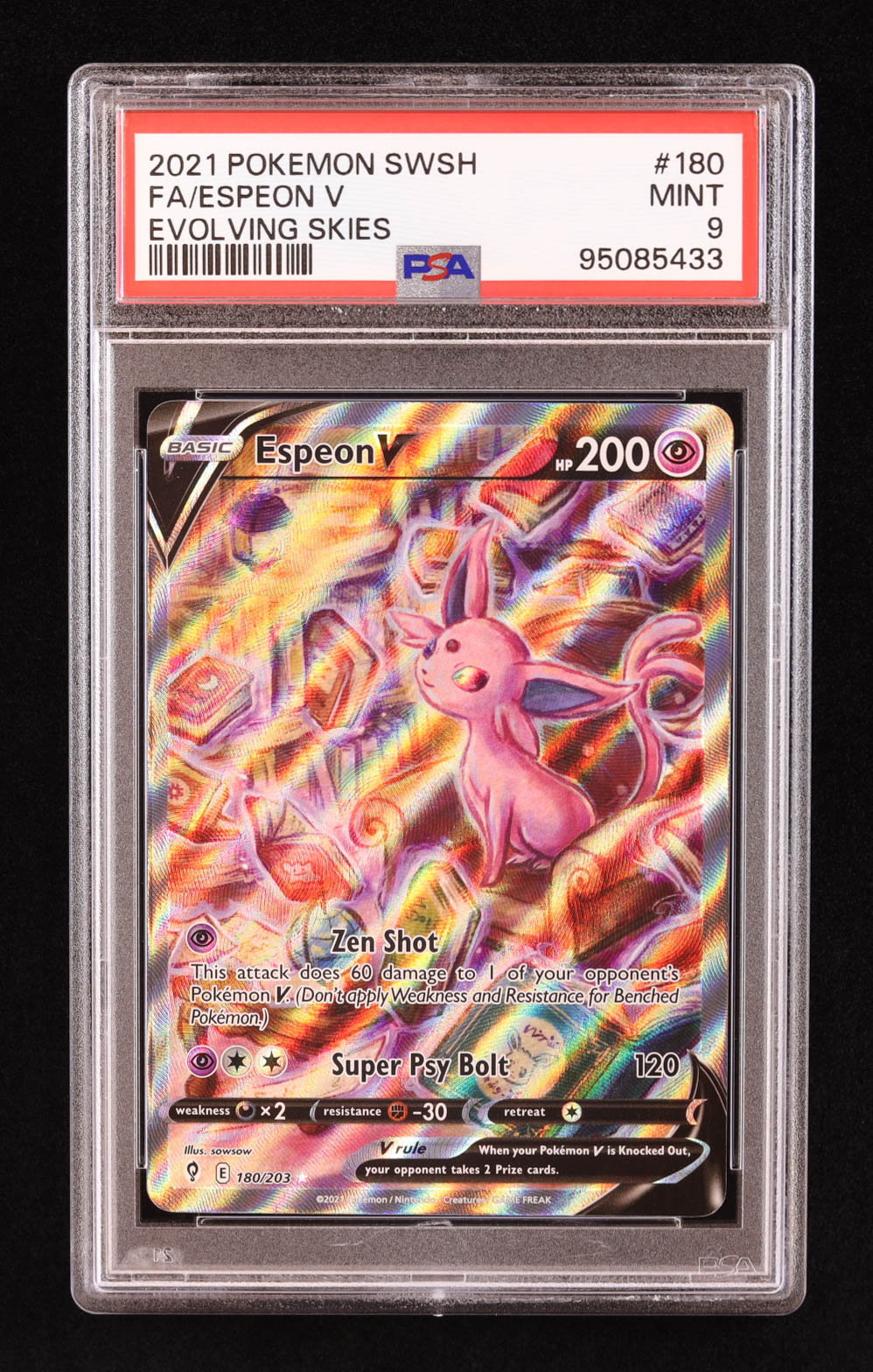 Espeon V 2021 Pokemon Sword and Shield Evolving Skies #180 (PSA 9)