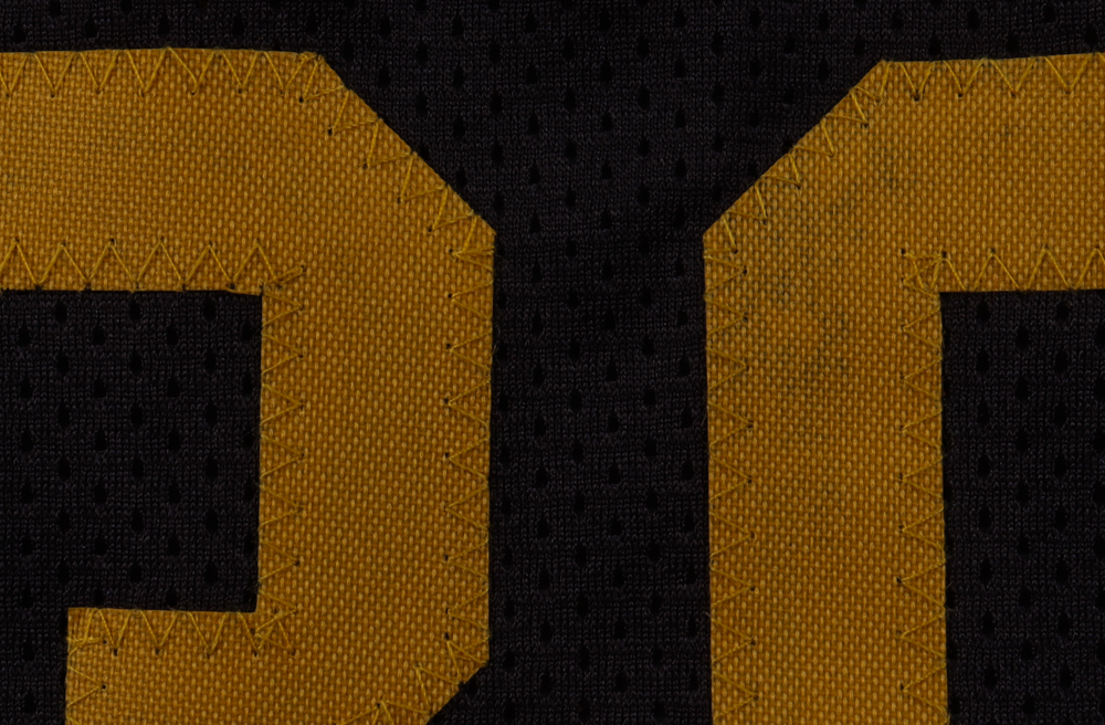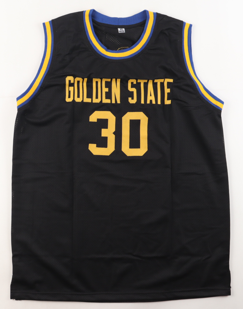 Custom jersey, everything sewn on, size XL. Hand-signed by Stephen Curry. Please note, glue is visible through the front number.
