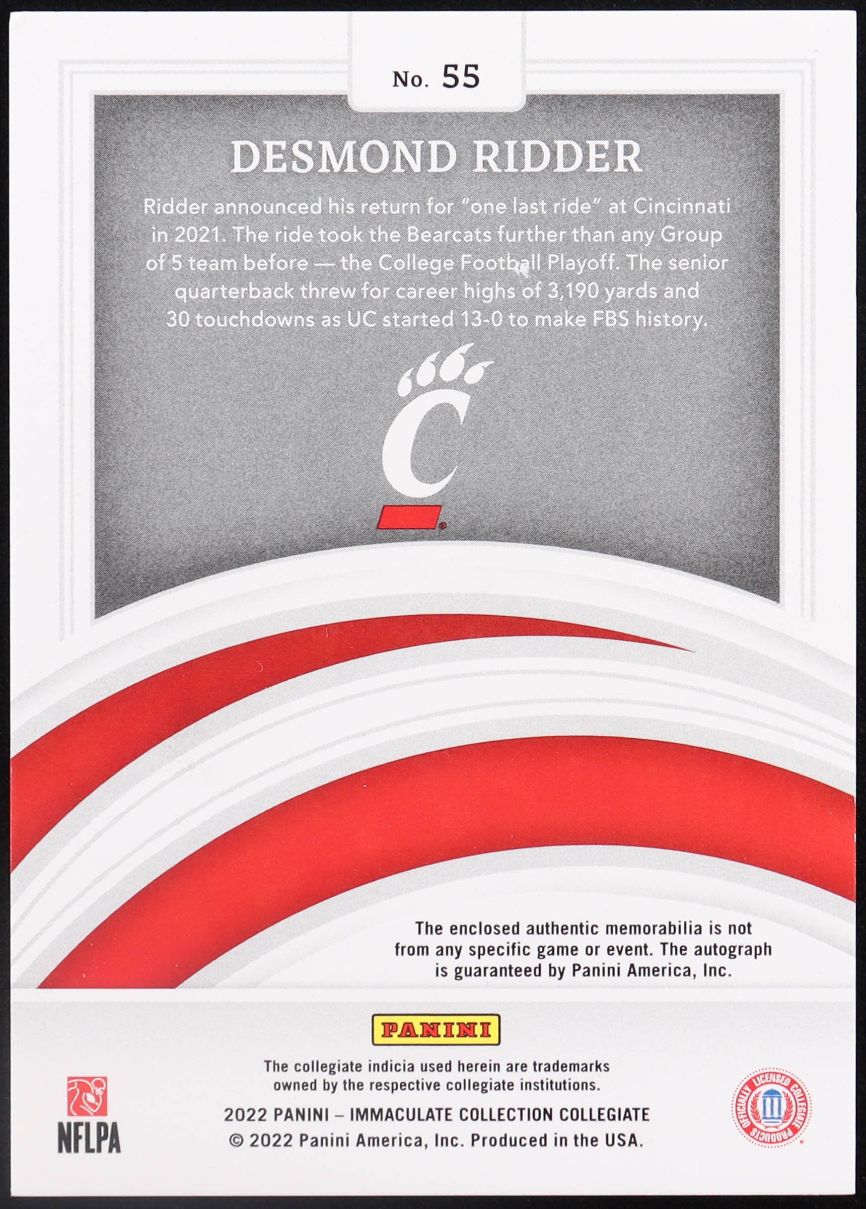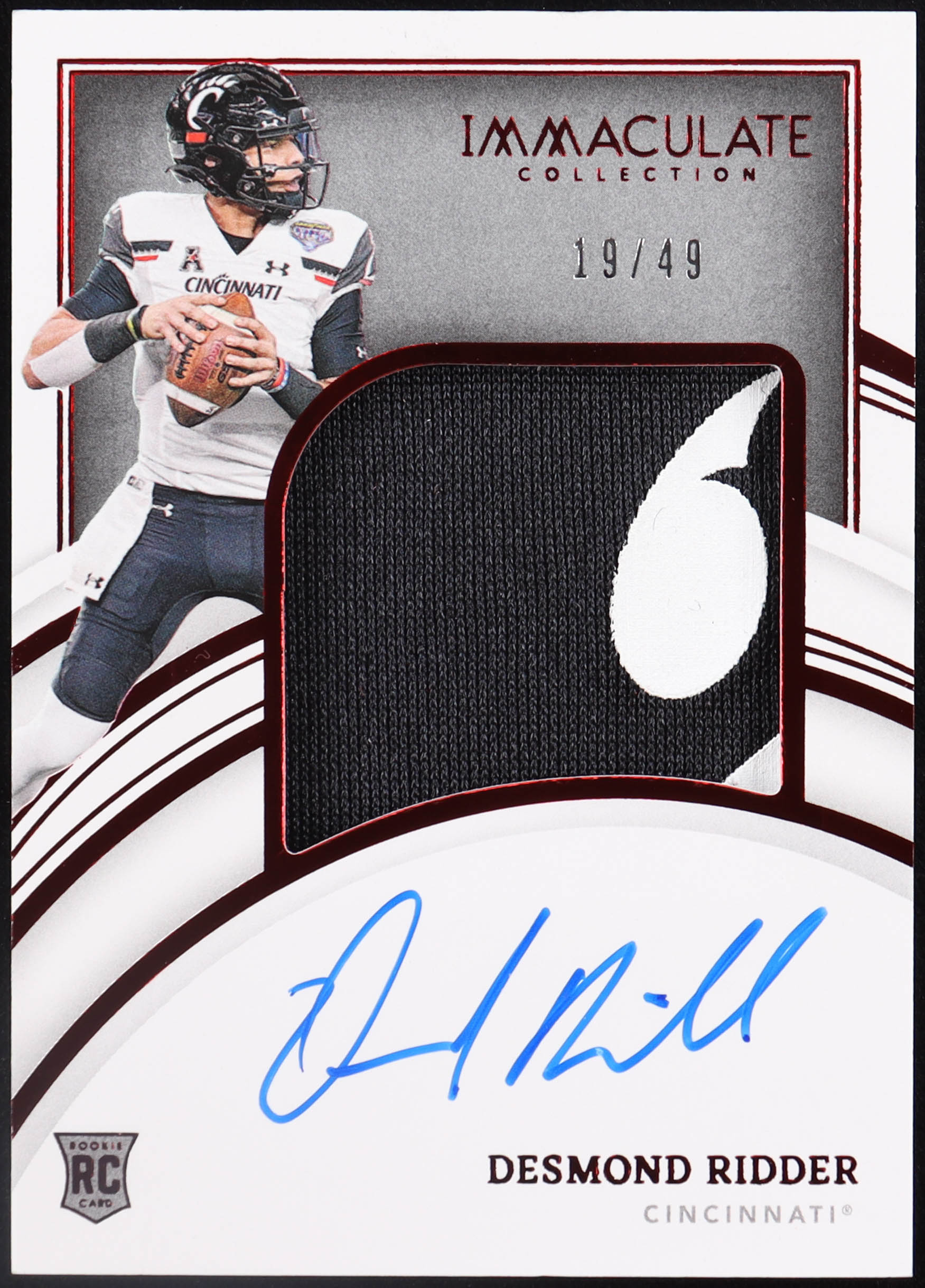 Desmond Ridder 2022 Panini Immaculate Collection Collegiate Ruby #55 JSY AU RC #19/49