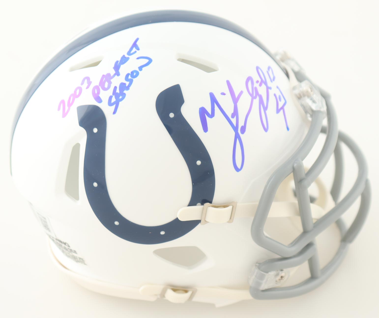 Mike Vanderjagt Signed Colts Speed Mini Helmet Inscribed "2003 Perfect Season" With Field Goal Sketch (Beckett)
