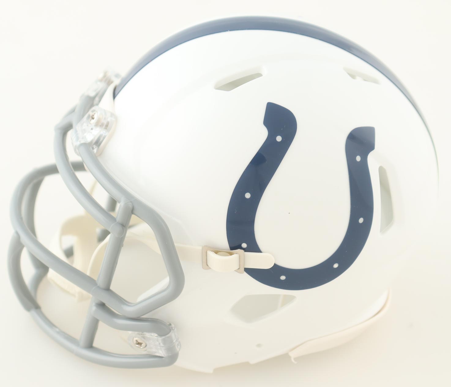 Riddell Indianapolis Colts speed mini helmet has been hand-signed and inscribed by Mike Vanderjagt.