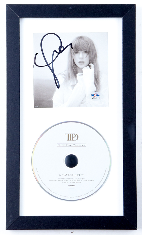 Custom frame measures approximately 8" x 13.5" in size. Features a "The Torture Poets Department" CD insert that has been hand-signed by Taylor Swift. The display also includes the disc as shown.