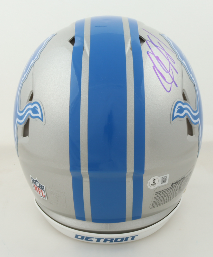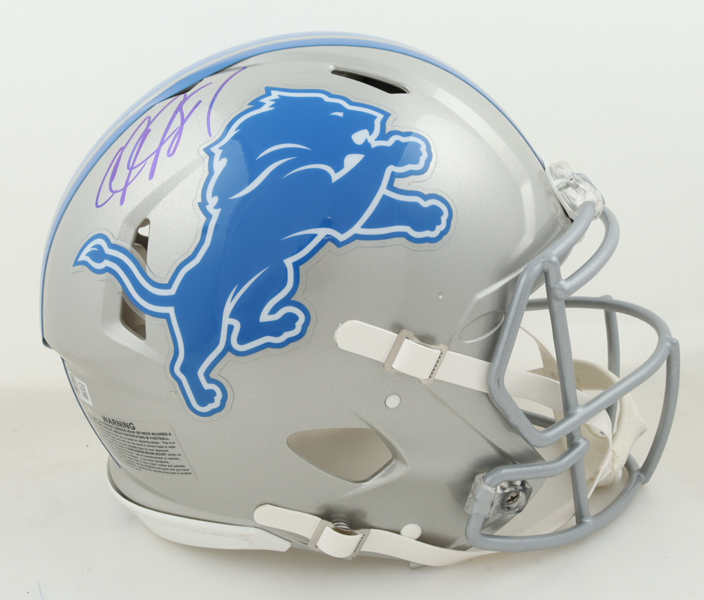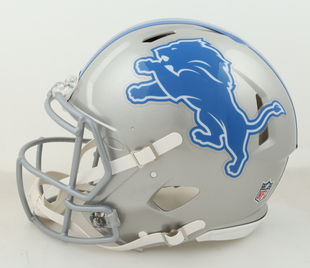 Riddell Detroit Lions Full-Size Authentic On-Field Speed Helmet. Hand-signed by Calvin Johnson (HOF).