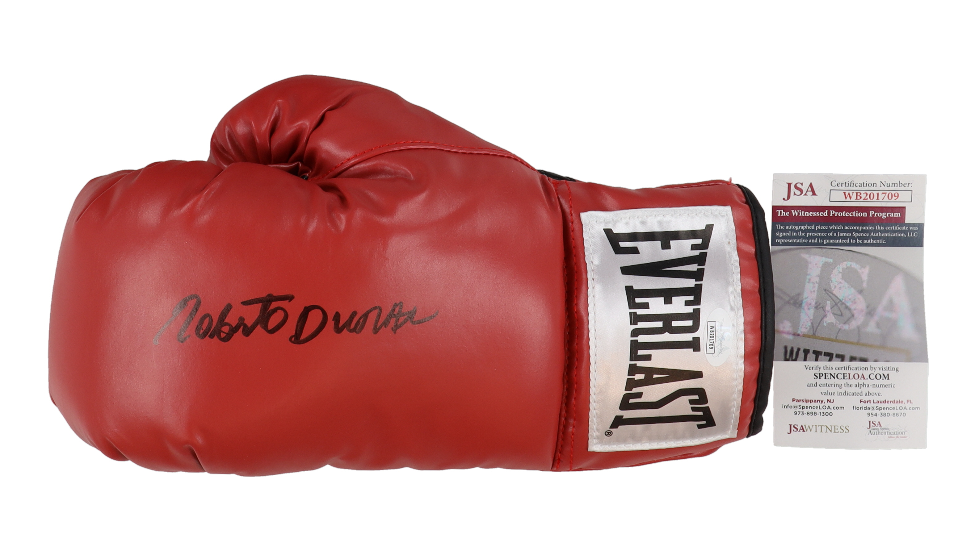 Everlast left boxing glove has been hand-signed by Roberto Duran (HOF).