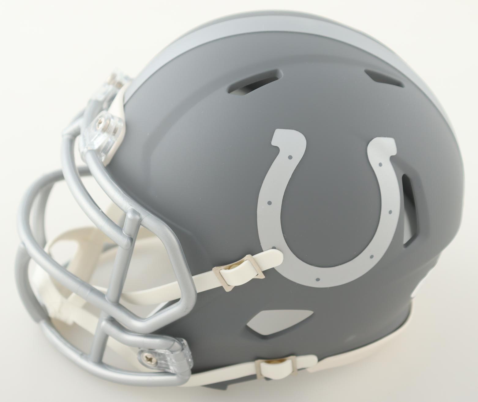 Riddell Indianapolis Colts Slate Alternate speed mini helmet. Hand-signed by Anthony Richardson.