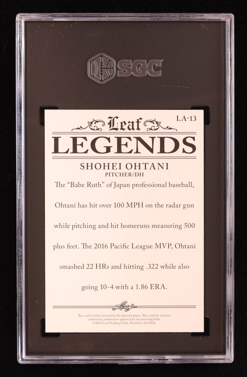 Shohei Ohtani 2023 Leaf Special Release Legends Achievement Purple #LA13 #5/10 (SGC 10)