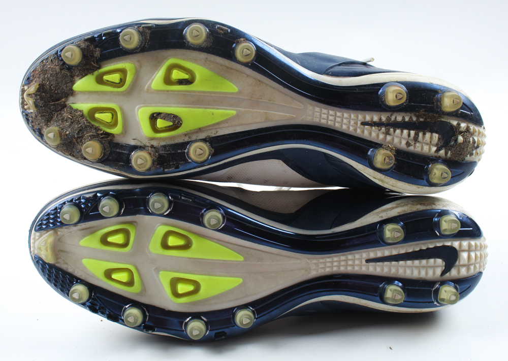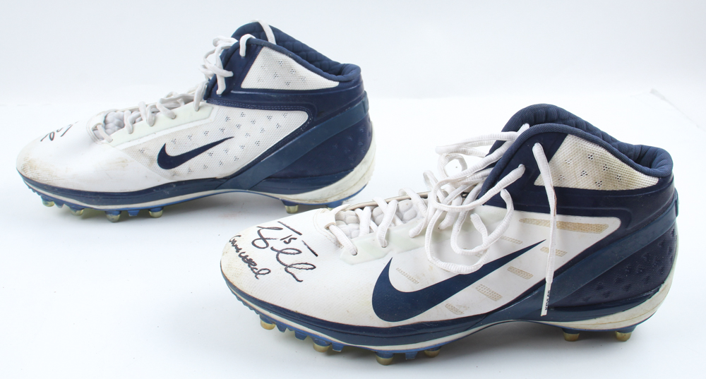 Pair of Nike football cleats, size (13) comes directly from Tim Tebow's collection and have been hand-signed and inscribed by Tim Tebow (New York Mets). It is unknown if it was used in practice or a game. Please note, there is scuffing and staining on the cleats.
