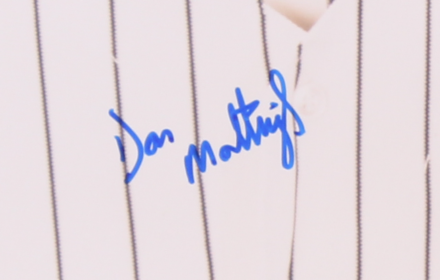 Photo measures 20" x 24" in size and has been hand signed in blue felt tip pen by Don Mattingly.