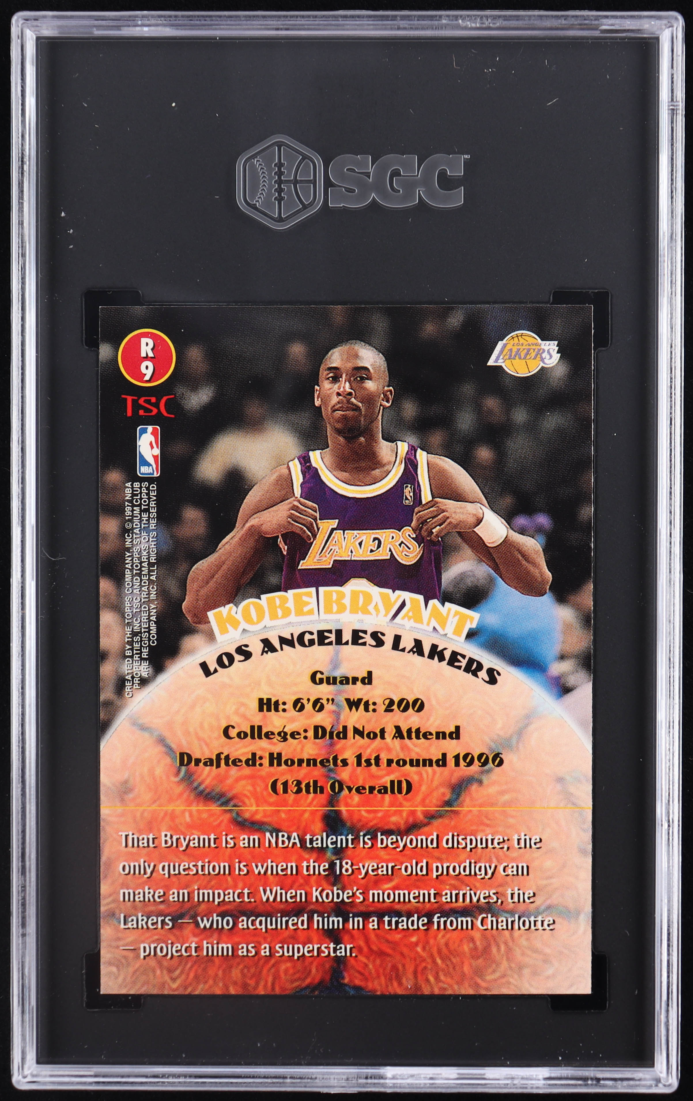 Card has been graded (SGC) 9. Please see photos for more details regarding the condition of the card (Los Angeles Lakers).