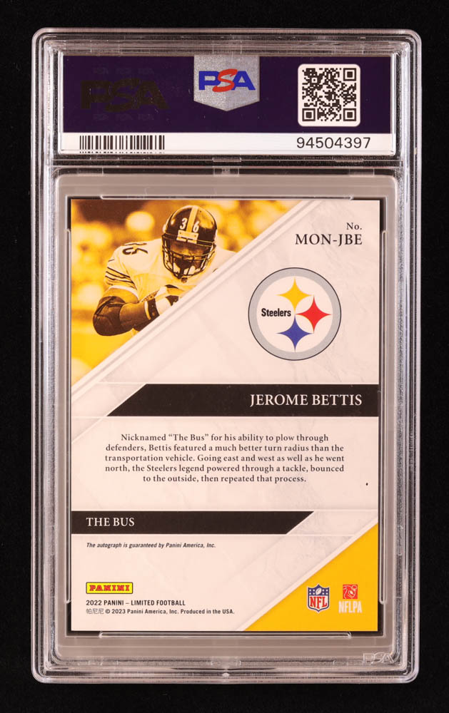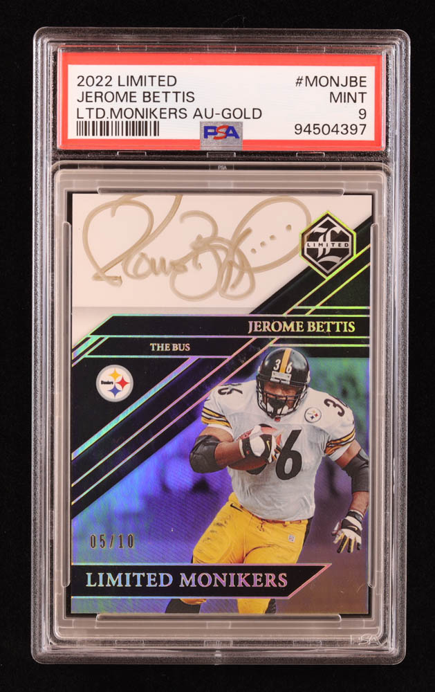 Jerome Bettis 2022 Limited Material Monikers Gold Spotlight #2 #5/10 (PSA 9)