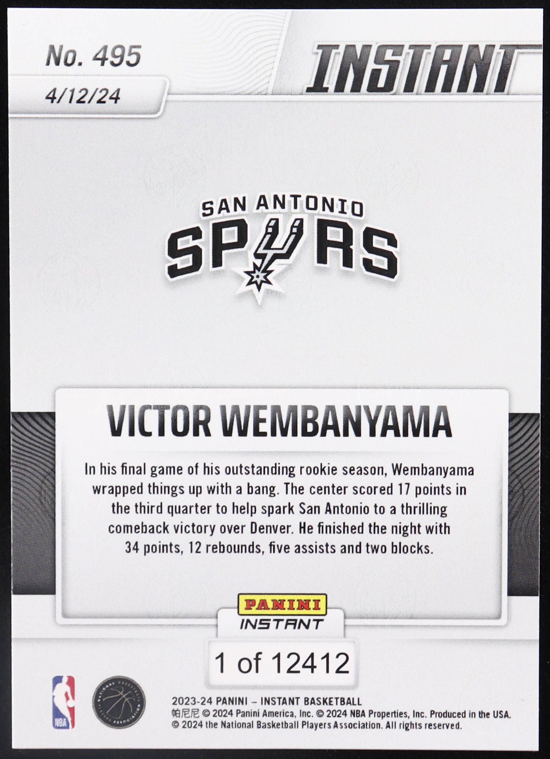 Victor Wembanyama 2023-24 Panini Instant #495 RC