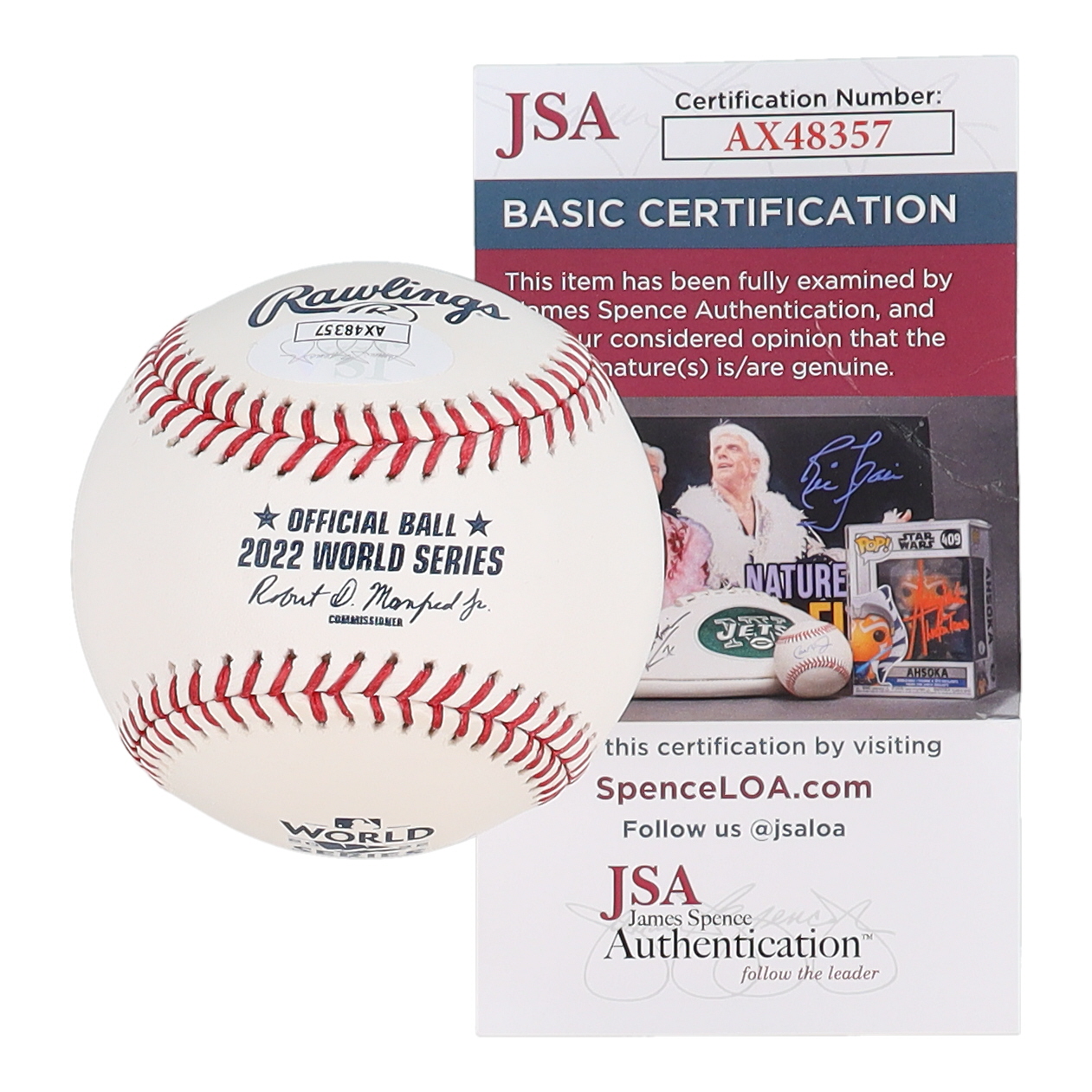 Rawlings Official 2022 World Series Logo Baseball. Hand-signed by Chas McCormick (Houston Astros). Please note, there are minor stains on the baseball.
