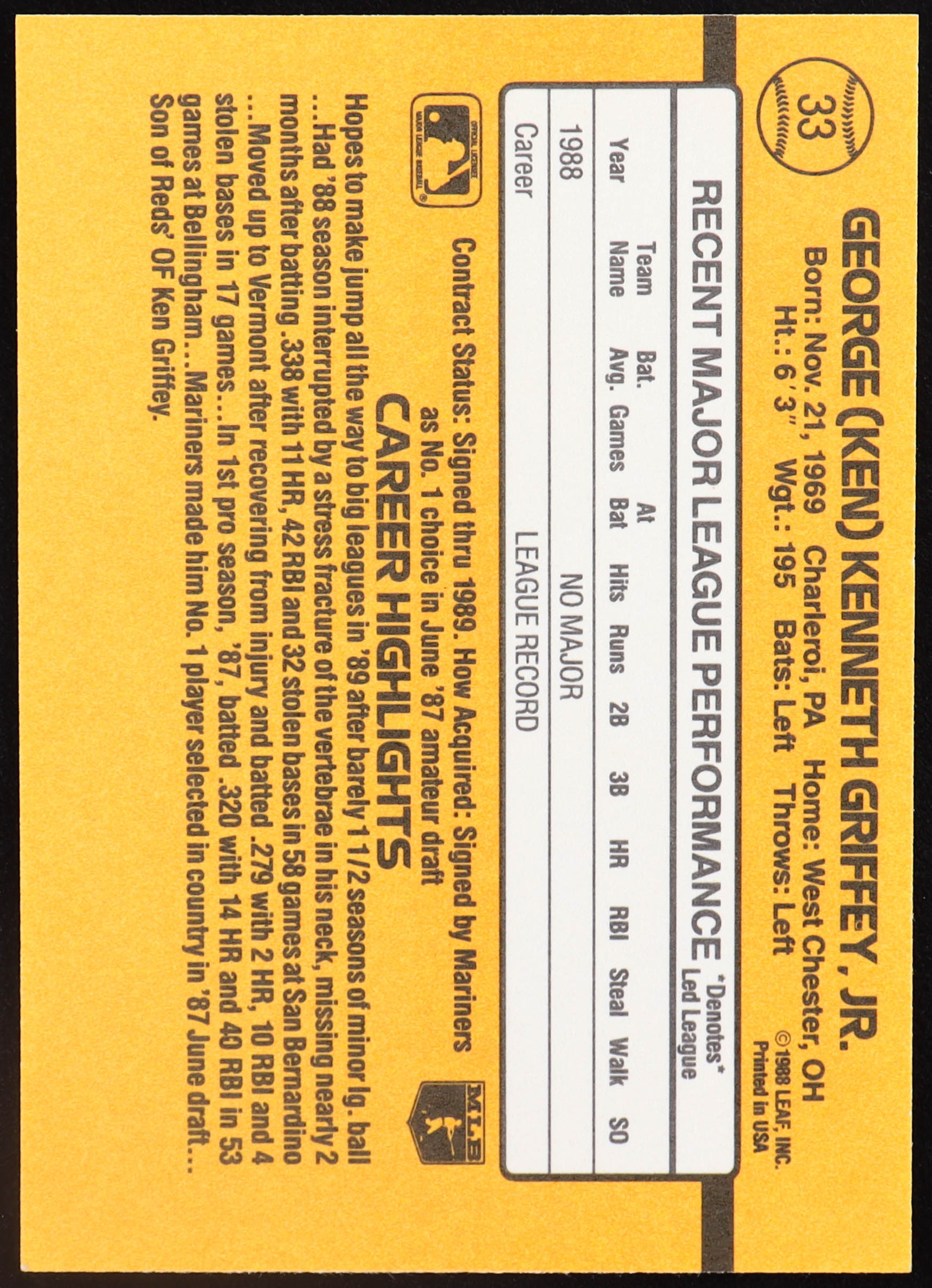 Ken Griffey Jr. 1989 Donruss #33 RR RC