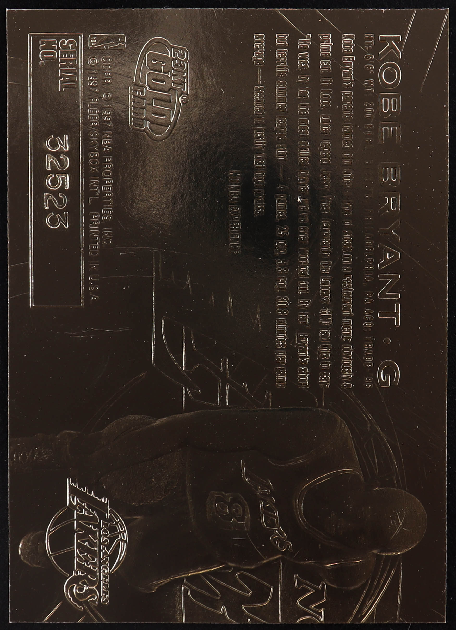 Kobe Bryant 1996-97 Fleer Purple Signature 23Kt Gold RC
