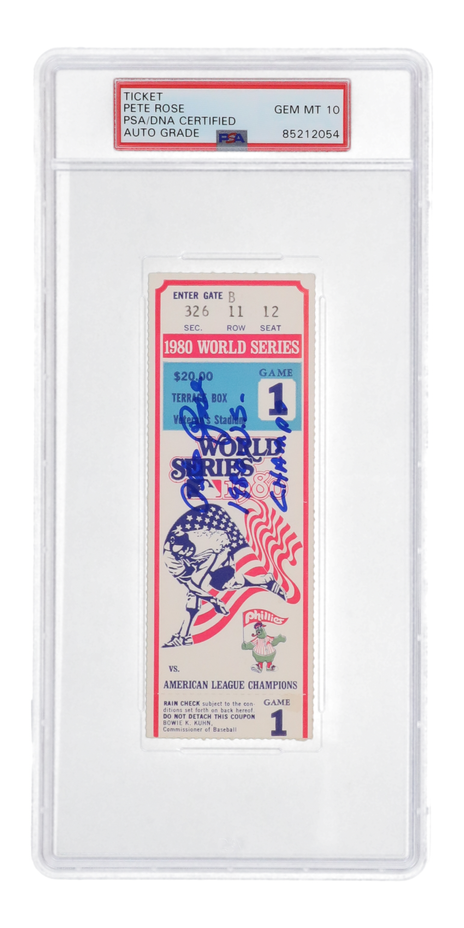 Pete Rose Signed 1980 World Series Game 1 Ticket Stub Inscribed "1980 W.S. Champs" (PSA | Auto 10)