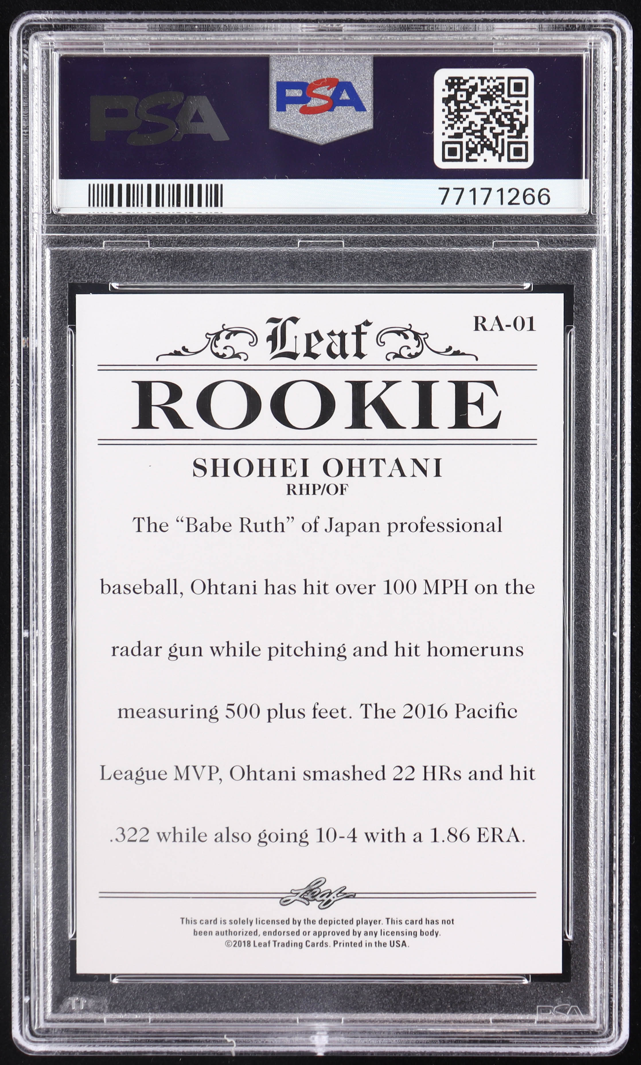 Shohei Ohtani 2018 Leaf Ohtani Rookie Achievement #RA01 RC (PSA 10)