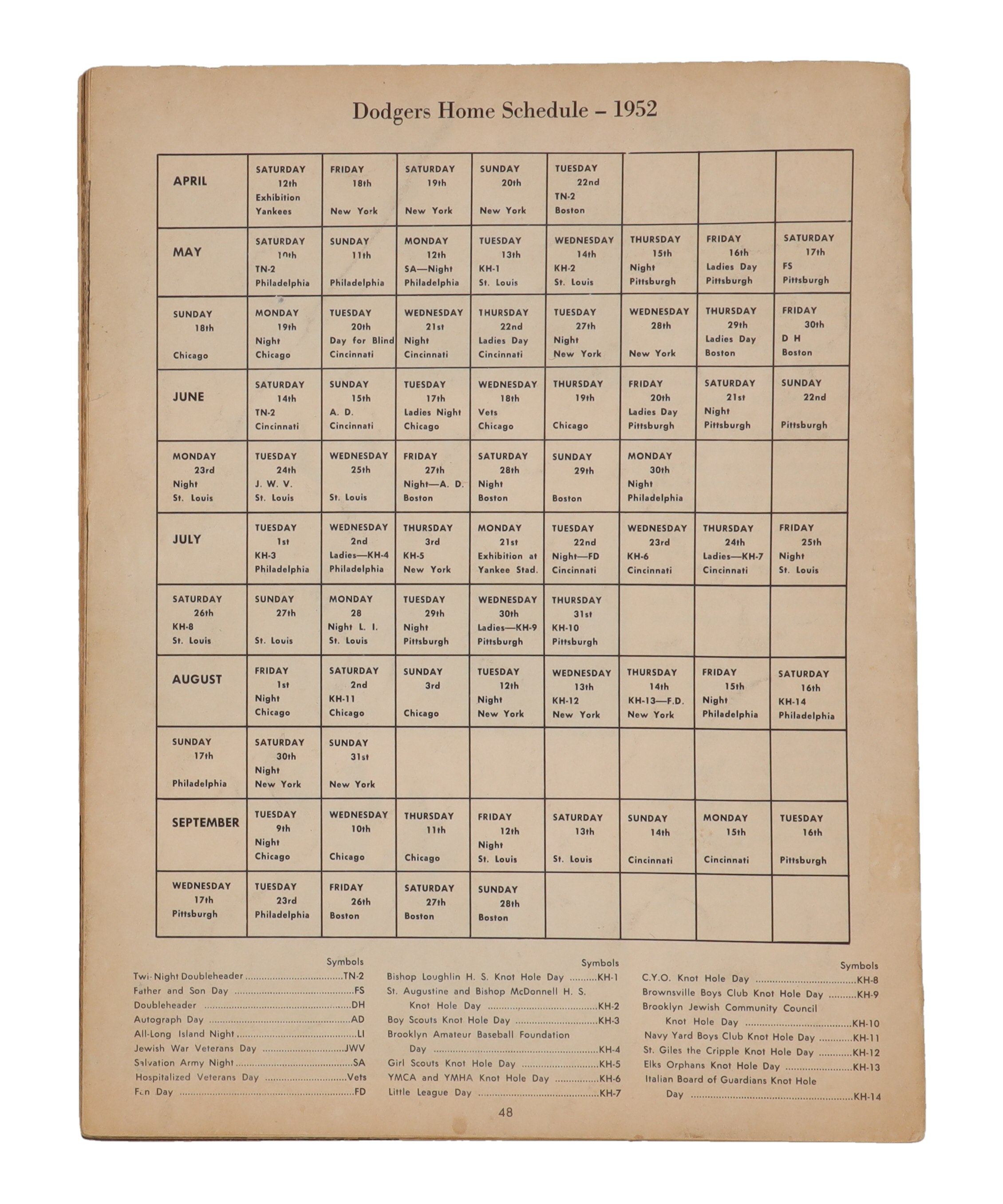 1952 Dodgers Yearbook Featuring Jackie Robinson & Pee Wee Reese