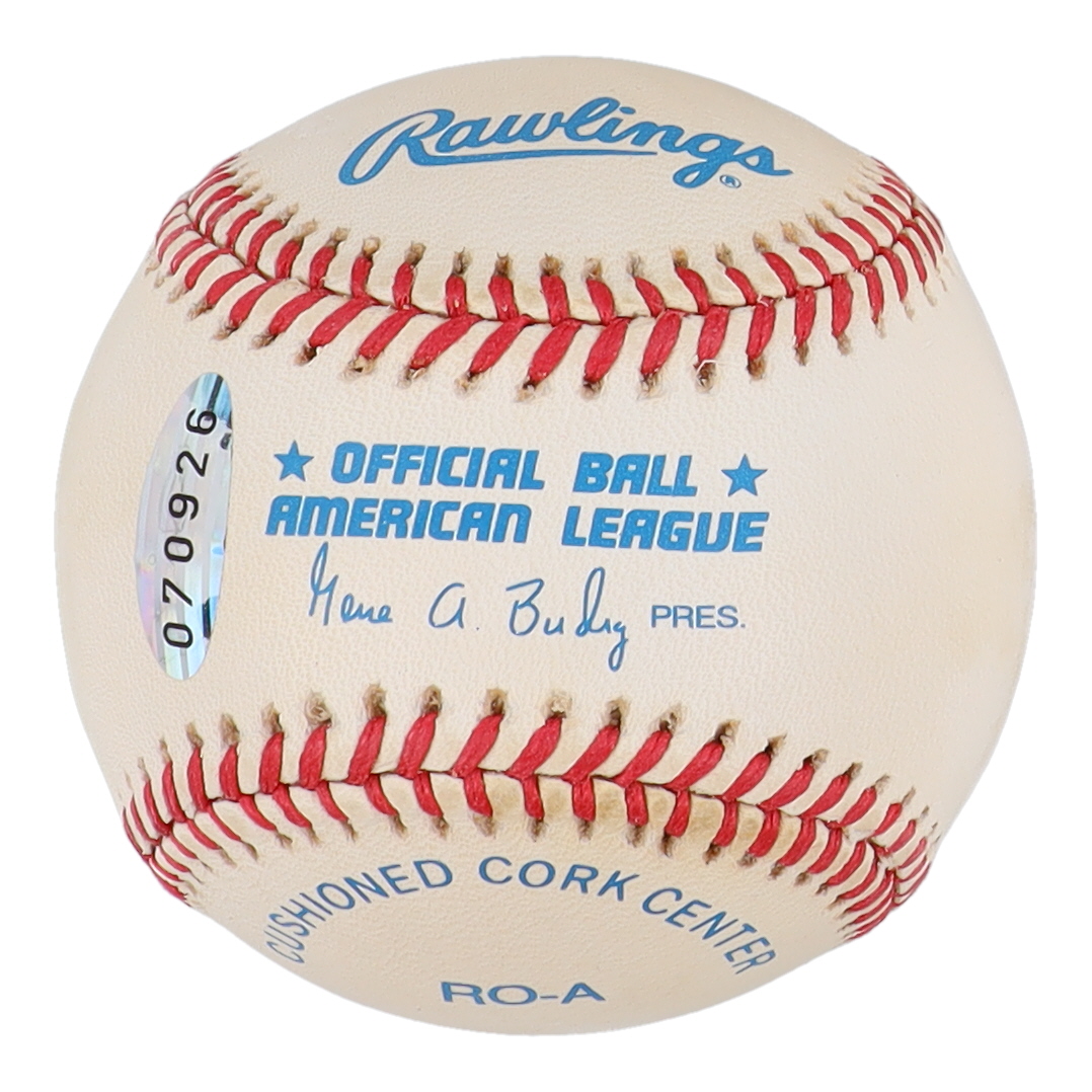 Rawlings Official American League baseball. Hand-signed and inscribed by Reggie Jackson (New York Yankees, HOF).