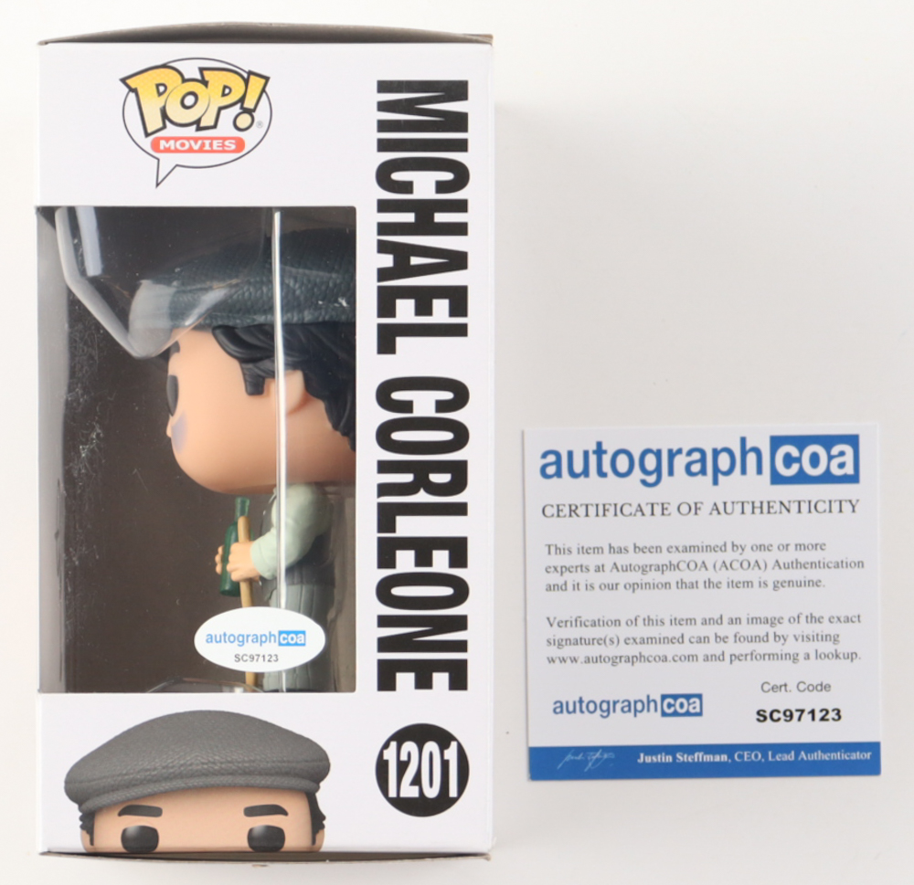 Funko Pop! vinyl figure measures approximately 4" tall. Hand-signed on the packaging by Al Pacino. Please note, item has been window swapped and small tear on the bottom corner of the packaging.