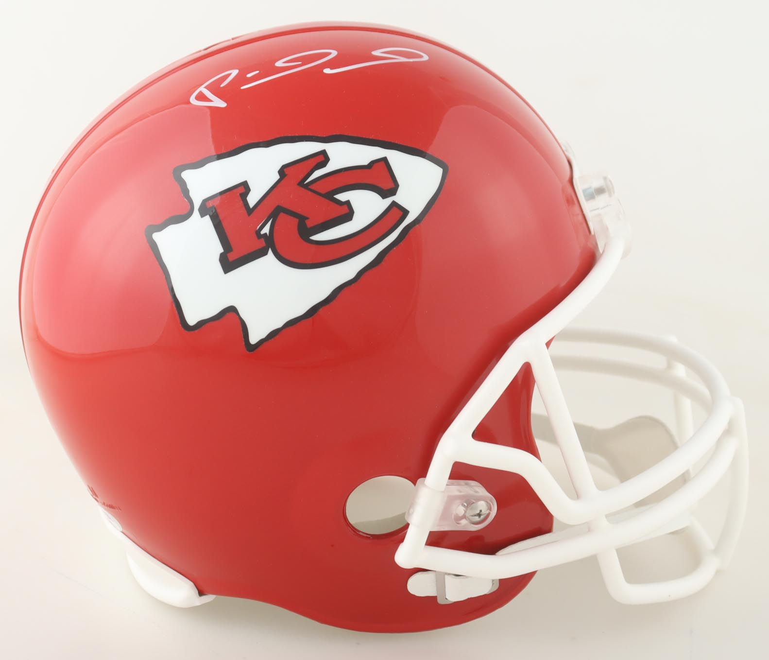 Riddell Kansas City Chiefs full-size replica helmet. Hand-signed by Patrick Mahomes II.