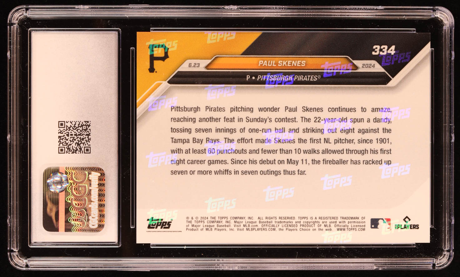 Paul Skenes 2024 Topps Now #334 RC (CGC 10)
