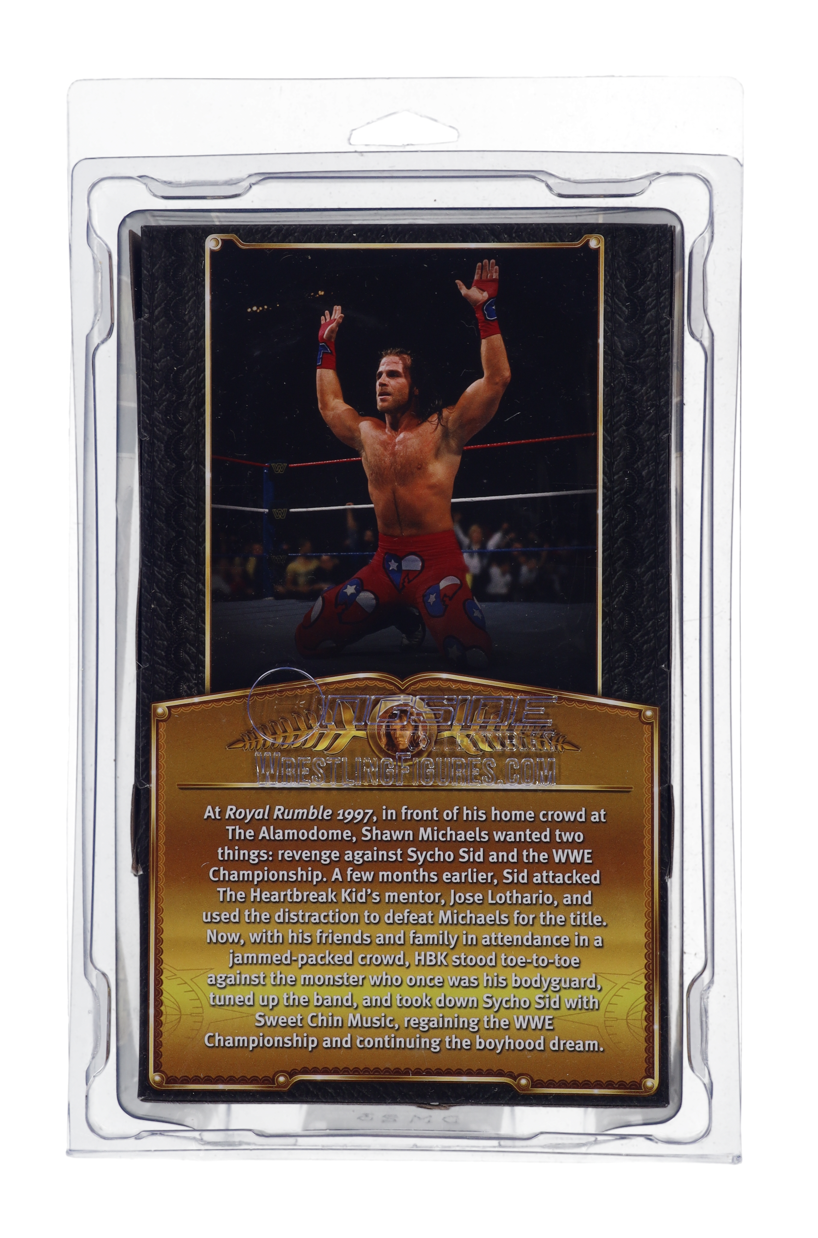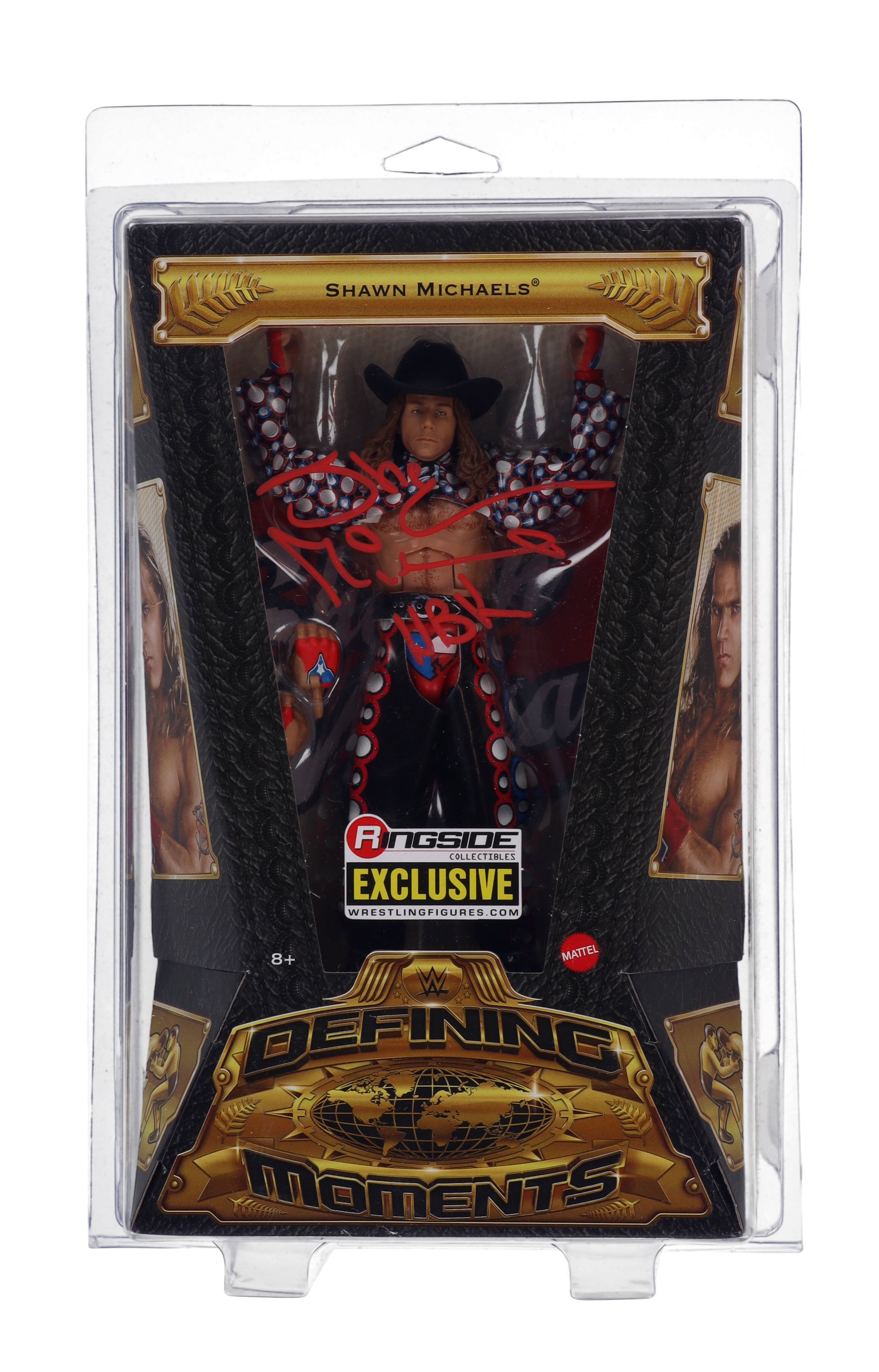 WWE Defining Moments Collection Series action figure. Hand-signed and inscribed on the front of the packaging by Shawn Michaels (HOF).